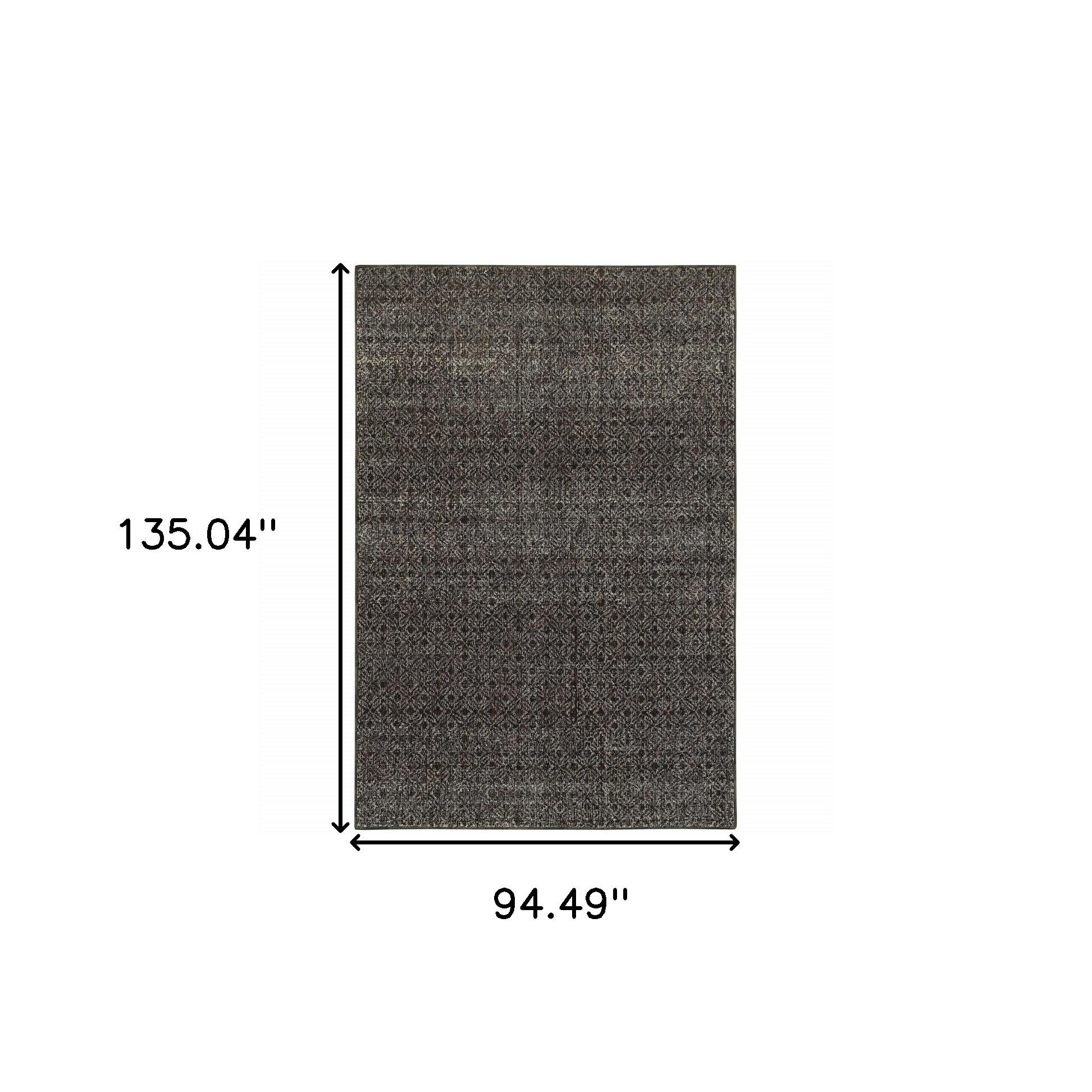 Set an inviting tone in your space with this 8-foot x 11-foot gray geometric power loom area rug. This rectangle shaped rug features a geometric design in gray to give it visual interest. A classic shape marries with good looking design for your space the coloring of this rug adds a delightfully neutral tone to your home and will easily match with most any decor. Ideal for spaces with kids and pets, this rug is stain resistant to help repel stains and spilled liquids. Area rugs help to give warmth and sense of home to your space. 94.49-inch H x 135.04-inch W x 0.55-inch D