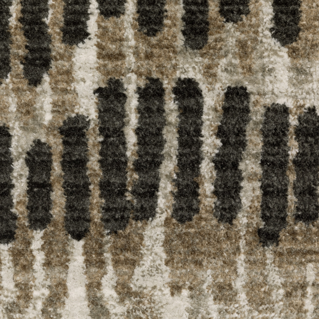 Add great coloration and comfortable texture to your space with this 5' x 8' beige ivory charcoal brown tan and grey abstract power loom stain resistant area rug with fringe. This rectangle shaped rug features a abstract design in beige ivory charcoal brown tan and grey to give it visual interest. A classic shape marries with good looking design for your space Ideal for spaces with kids and pets, this rug is stain resistant to help repel stains and spilled liquids. Tassel ends bring a timeless and fashionable look to your interior. Place this area rug against a hardwood or tile floor and it will enliven your living space with style and sophistication. 0.31" H x 62.99" W x 90.55" D