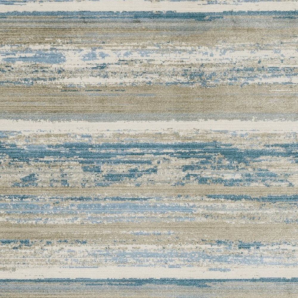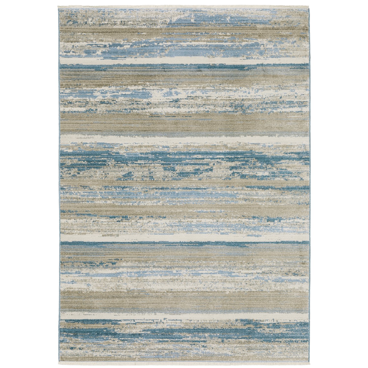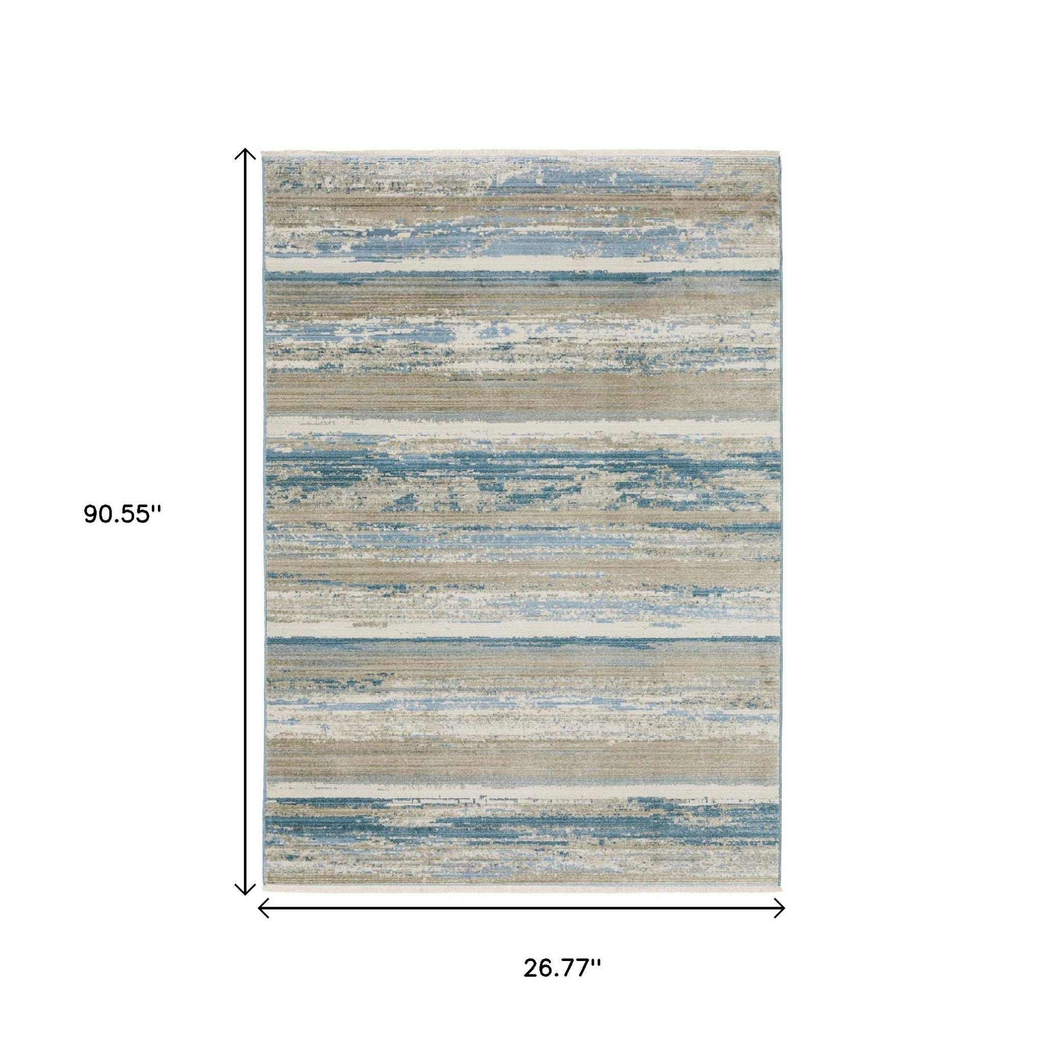 This 8-foot blue and beige abstract distressed runner rug with fringe, is a great way to add warmth to a room. Ideal for spaces with kids and pets, this rug is stain resistant to help repel dirt and spilled liquids. Crafted from eco-friendly recycled pet fibers that are made from recycled water bottles and other biodegradable items to give this rug a comfortable feel, stain resistance and the added benefit of reducing waste in our landfills. Rugs are a great way to showcase your style, hide imperfections, warm your home and reduce noise. Tassel ends bring a timeless and fashionable look to your interior. 26.77-inch h x 90.55-inch w x 0.31-inch d.