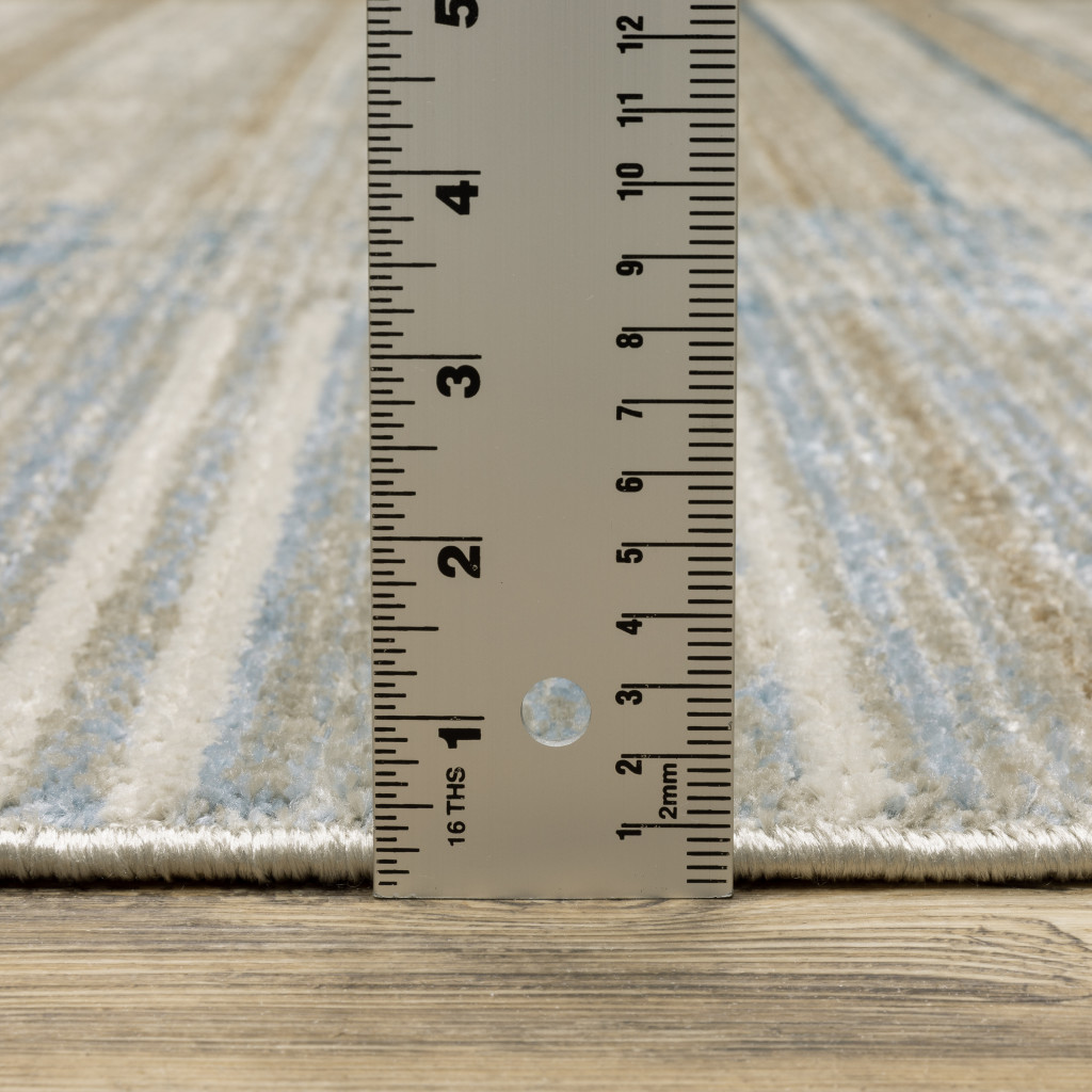 This 10' x 13' blue dark blue teal grey ivory beige and tan geometric power loom stain resistant area rug with fringe, is a great way to add warmth to a room. This rectangle shaped rug features a geometric design in blue dark blue teal grey ivory beige and tan to give it visual interest. A classic shape marries with good looking design for your space Ideal for spaces with kids and pets, this rug is stain resistant to help repel stains and spilled liquids. Tassel ends bring a timeless and fashionable look to your interior. Area Rugs help to give warmth and sense of home to your space. 0.31" H x 118.11" W x 153.54" D