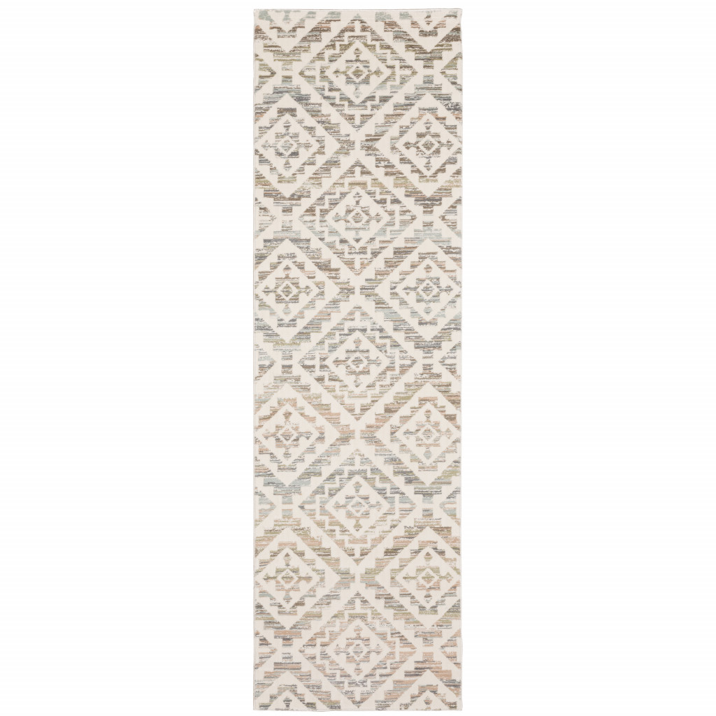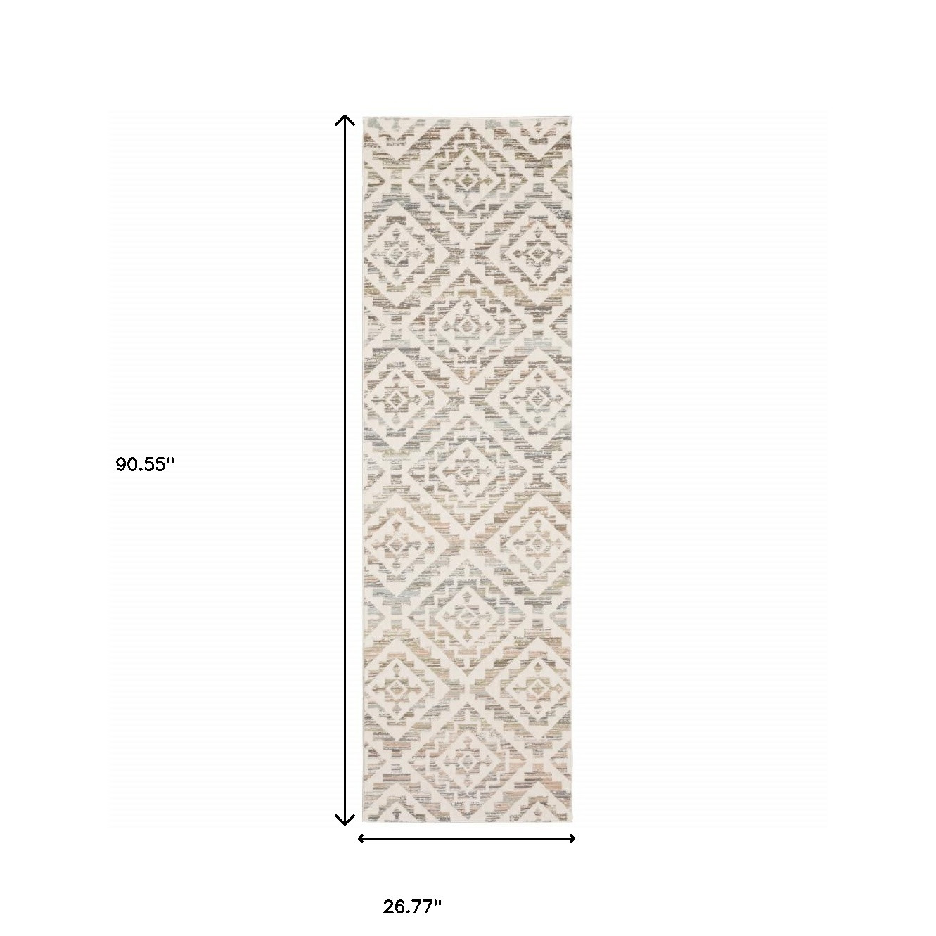 Add some artistry to your room with this 2' x 8' grey pink and sage geometric power loom stain resistant runner rug. This runner shaped rug features a geometric design in grey pink and sage to give it visual interest. A classic shape marries with good looking design for your space Ideal for spaces with kids and pets, this rug is stain resistant to help repel stains and spilled liquids. Area Rugs help to give warmth and sense of home to your space. 0.39" H x 26.77" W x 90.55" D