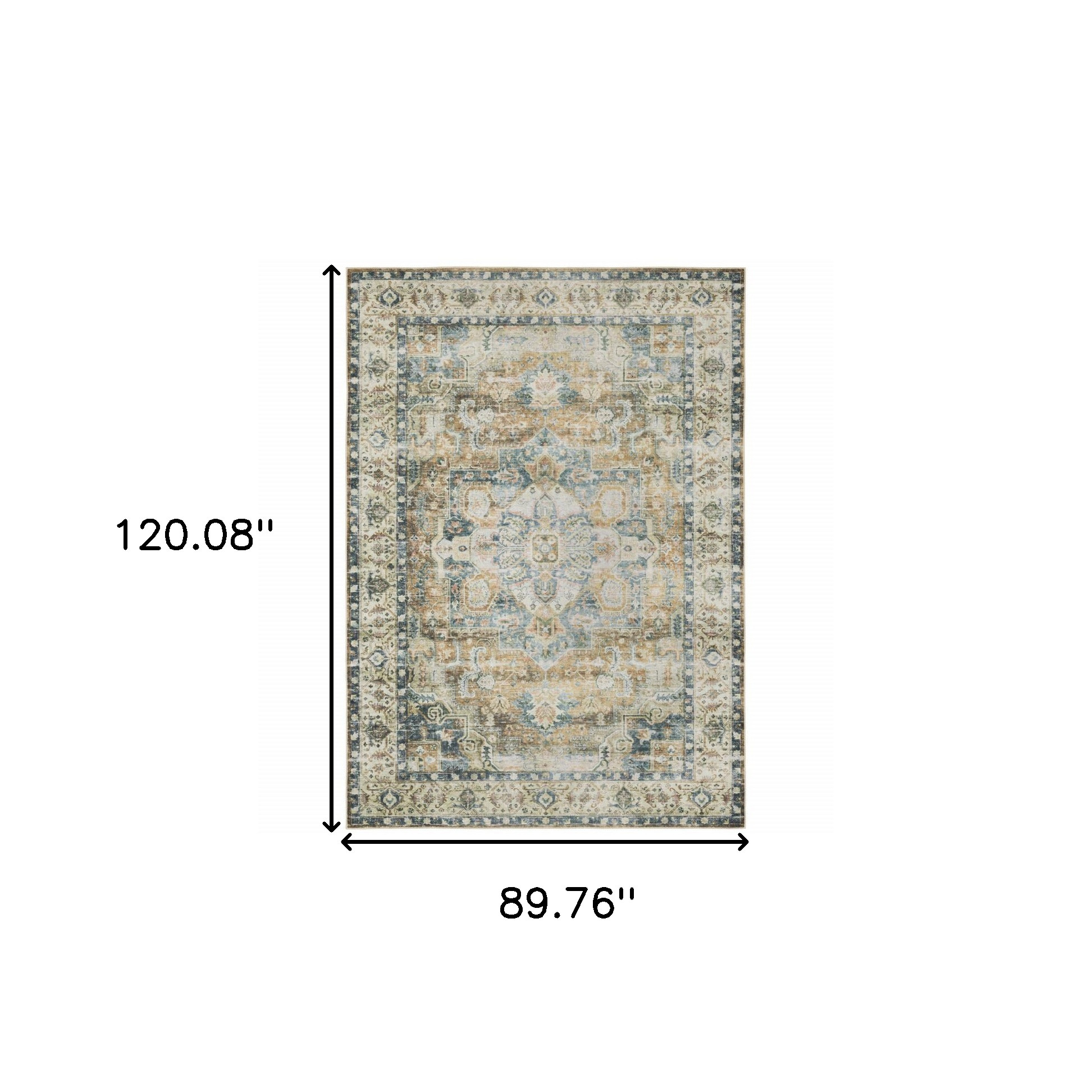 Add great coloration and comfortable texture to your space with this 7-foot x 10-foot blue and gold oriental non skid area rug. This rectangle shaped rug features a oriental design in blue and gold to give it visual interest. A classic shape marries with good looking design for your space ideal for spaces with kids and pets, this rug is stain resistant to help repel stains and spilled liquids. 89.76-inch H x 120.08-inch W x 0.12-inch D