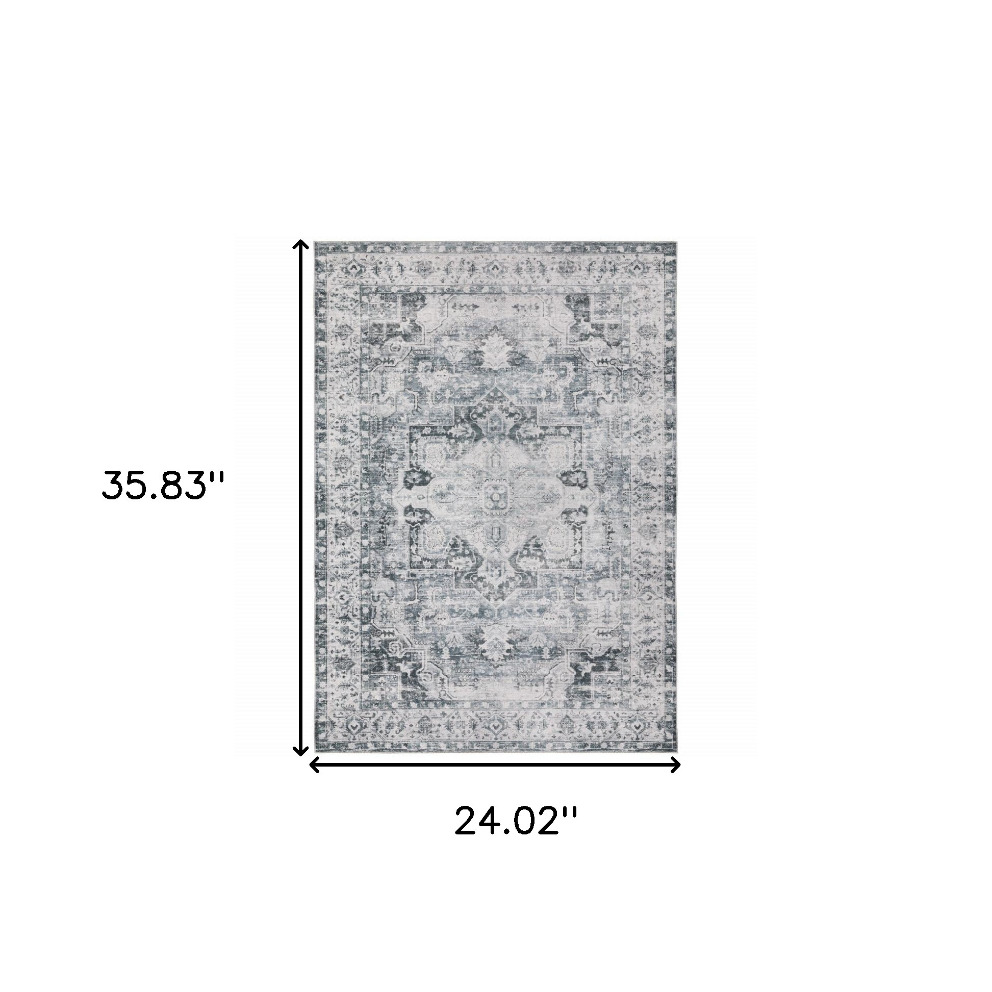 Set an inviting tone in your space with this 2' x 3' gray and ivory oriental printed non skid area rug. This rectangle shaped rug features a oriental design in gray and ivory to give it visual interest. A classic shape marries with good looking design for your space Ideal for spaces with kids and pets, this rug is stain resistant to help repel stains and spilled liquids. Area Rugs help to give warmth and sense of home to your space. 0.12" H x 24.02" W x 35.83" D