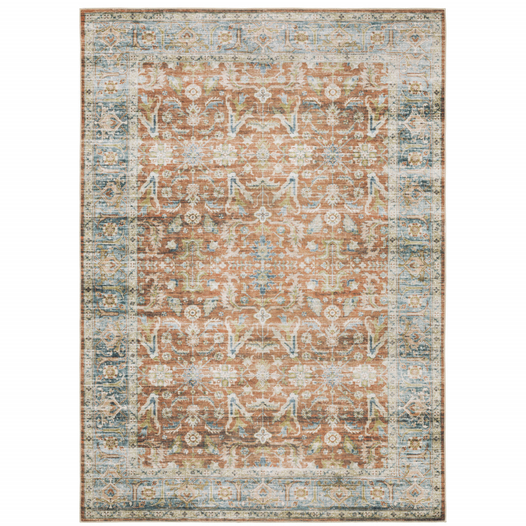 Charleston Washable Oriental Distressed CHA04 7'6X10' Rust/ Blue Machine-Print Indoor Rug