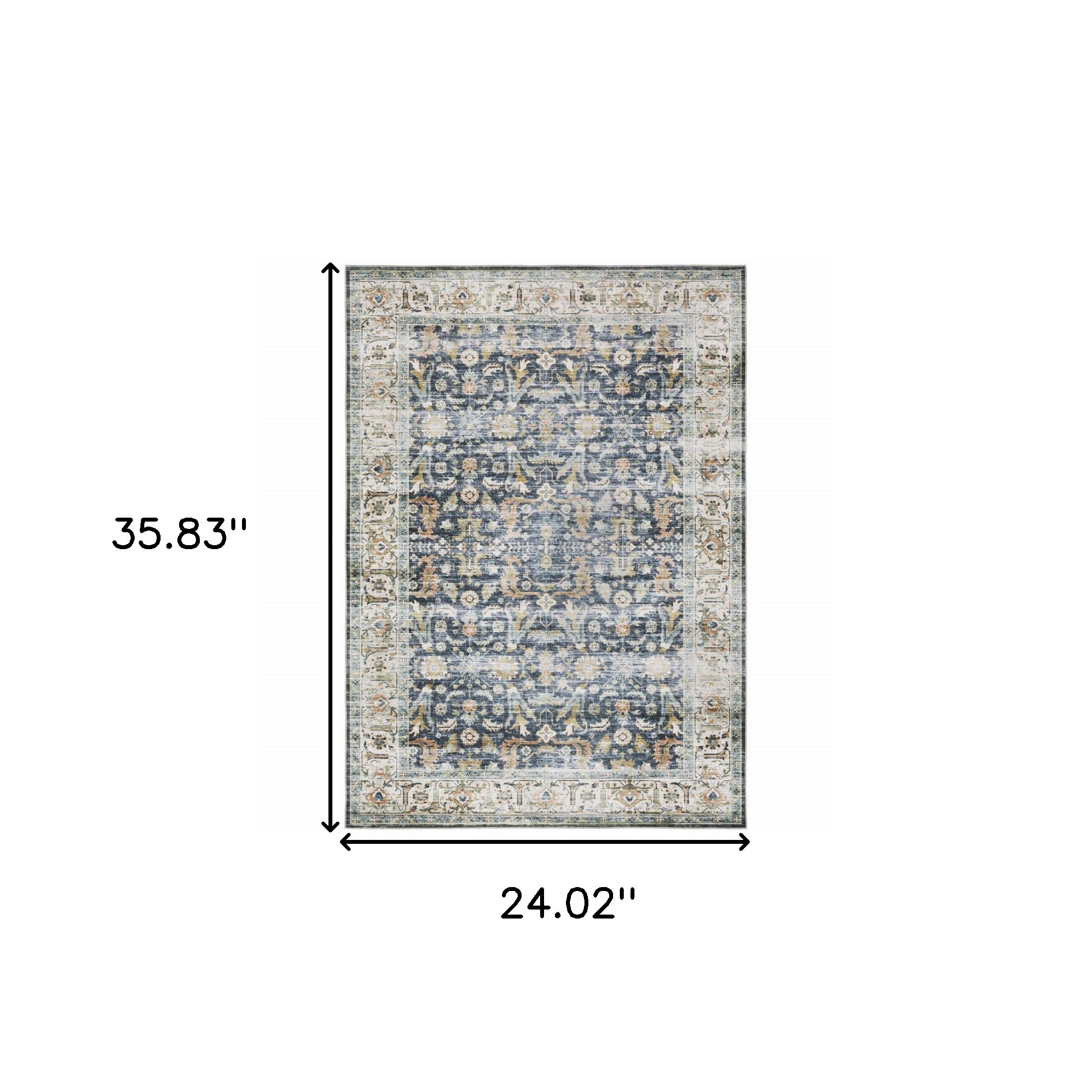 Set an inviting tone in your space with this 2-foot x 3-foot blue and gold oriental distressed area rug. Ideal for spaces with kids and pets, this rug is stain resistant to help repel dirt and spilled liquids. Built to last, this rug crafted from polyester fibers is known for its durability and long lasting appeal. Rugs are a great way to showcase your style, hide imperfections, warm your home and reduce noise. 24.02-inch h x 35.83-inch w x 0.12-inch d.