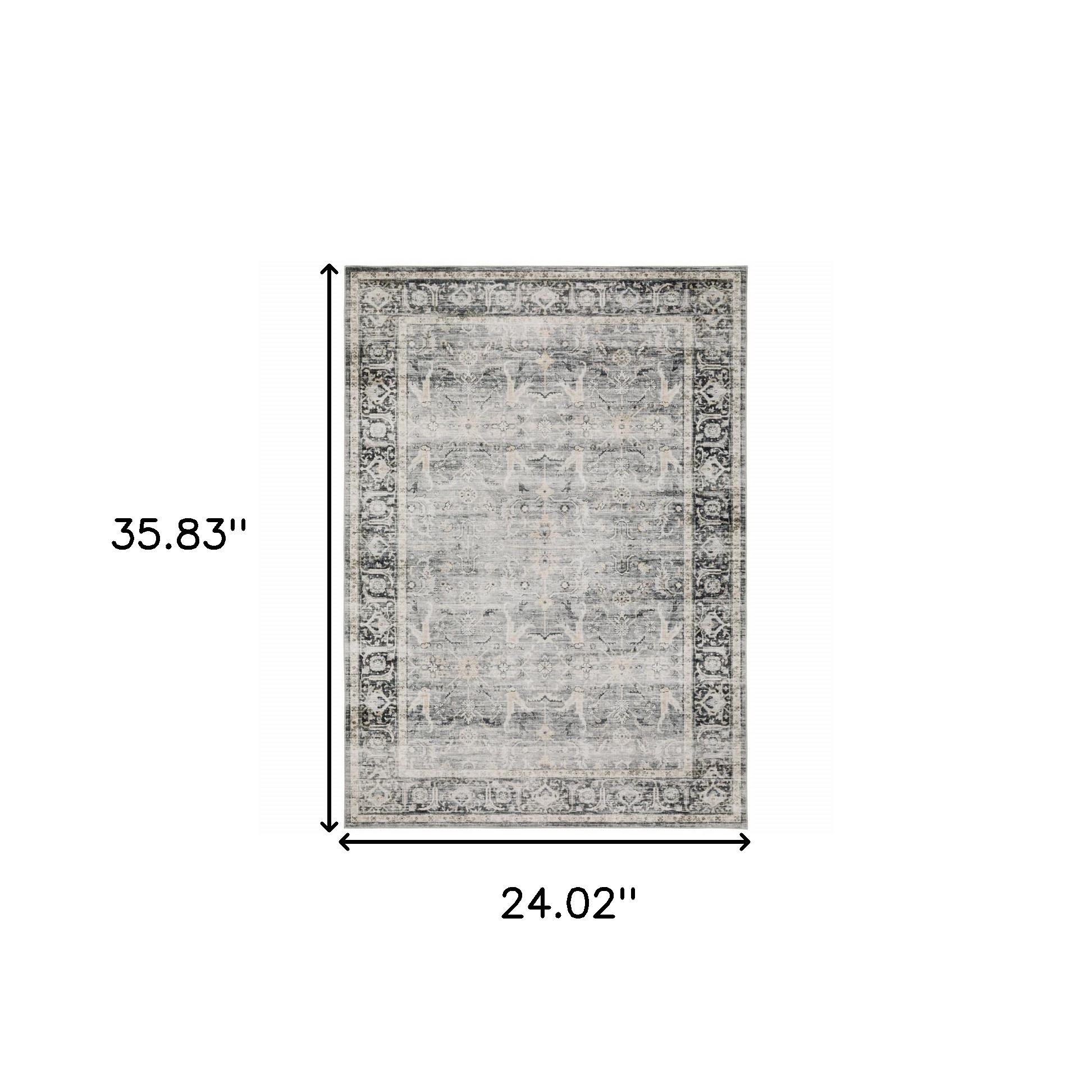 This 2' x 3' charcoal grey salmon and ivory oriental printed stain resistant non skid area rug, is a great way to add warmth to a room. This rectangle shaped rug features a oriental design in charcoal grey salmon and ivory to give it visual interest. A classic shape marries with good looking design for your space Ideal for spaces with kids and pets, this rug is stain resistant to help repel stains and spilled liquids. Place this area rug against a hardwood or tile floor and it will enliven your living space with style and sophistication. 0.12" H x 24.02" W x 35.83" D