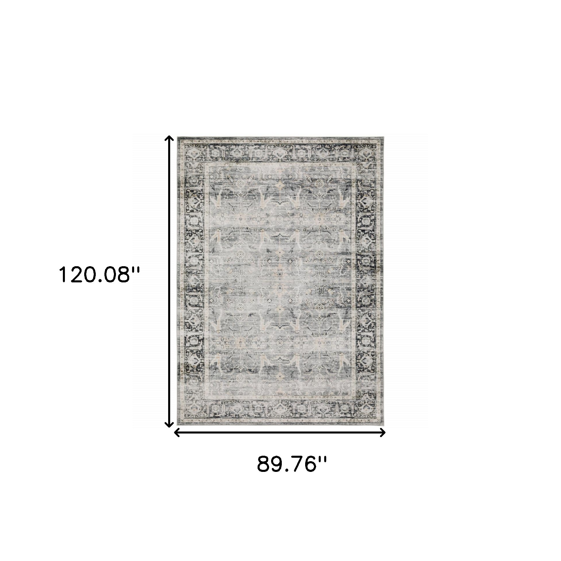 Charleston Washable Oriental Distressed CHA07 7'6X10' Charcoal/ Grey Machine-Print Indoor Rug