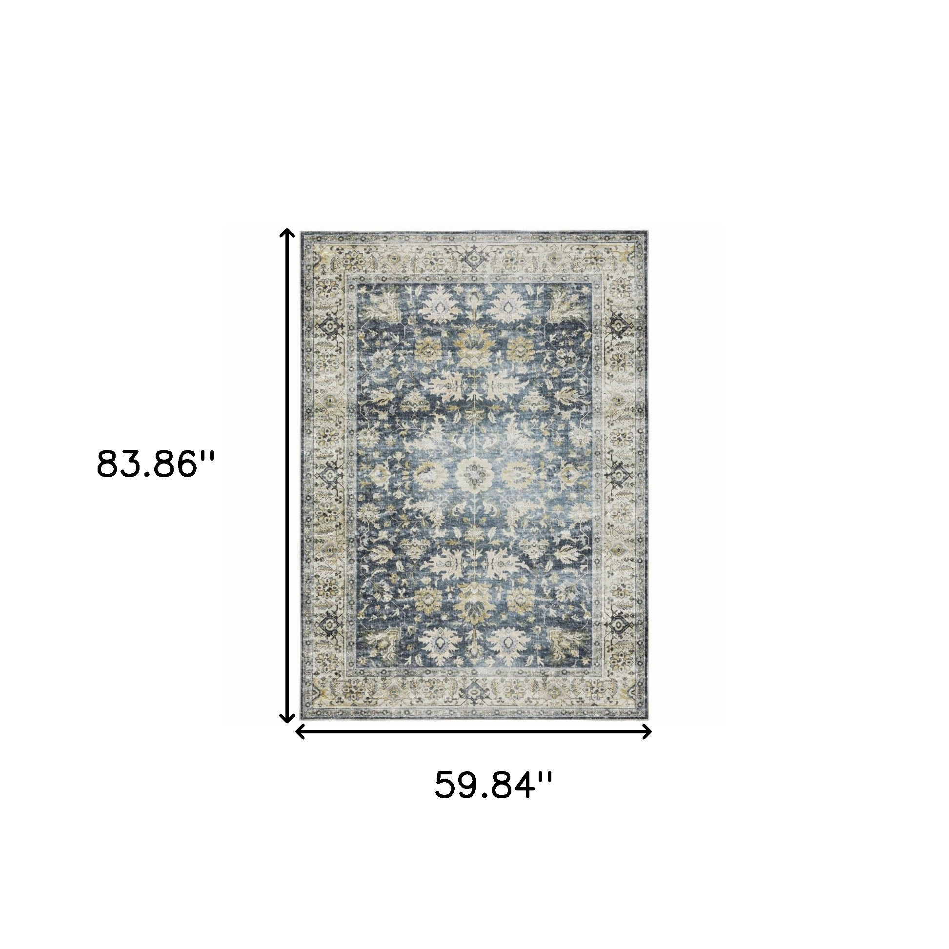 Set an inviting tone in your space with this 5' x 7' blue gold green and ivory oriental printed stain resistant non skid area rug. This rectangle shaped rug features a oriental design in blue gold green and ivory to give it visual interest. A classic shape marries with good looking design for your space Ideal for spaces with kids and pets, this rug is stain resistant to help repel stains and spilled liquids. Area Rugs help to give warmth and sense of home to your space. 0.12" H x 59.84" W x 83.86" D