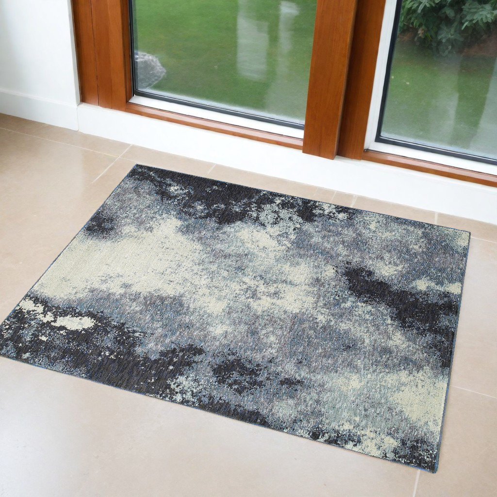 Add some artistry to your room with this 3-foot x 5-foot blue and ivory abstract power loom area rug. This rectangle shaped rug features a abstract design in blue and ivory to give it visual interest. A classic shape marries with good looking design for your space ideal for spaces with kids and pets, this rug is stain resistant to help repel stains and spilled liquids. Place this area rug against a hardwood or tile floor and it will enliven your living space with style and sophistication. 39.37-inch H x 66.93-inch W x 0.55-inch D