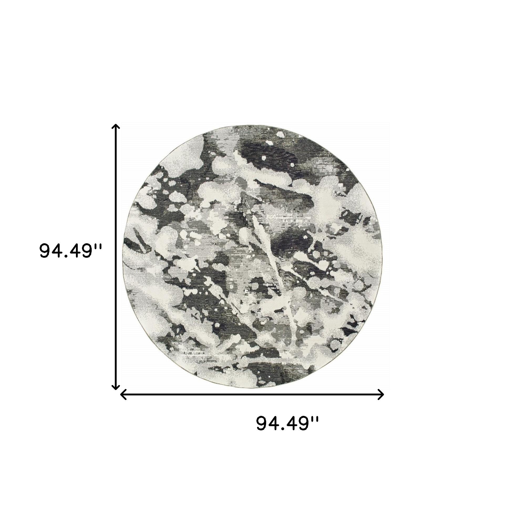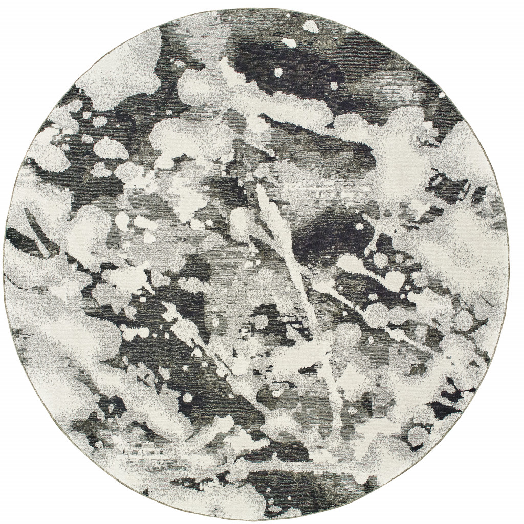 Set an inviting tone in your space with this 8-foot gray and white round abstract power loom area rug. This geometric round shaped rug features a abstract pattern in gray and white that combines a good looking print with a unique and updated shape. The mix of shape, color, and design gives this rug refreshing visual interest. Ideal for spaces with kids and pets, this rug is stain resistant to help repel stains and spilled liquids. Place this area rug against a hardwood or tile floor and it will enliven your living space with style and sophistication. 94.49-inch H x 94.49-inch W x 0.55-inch D
