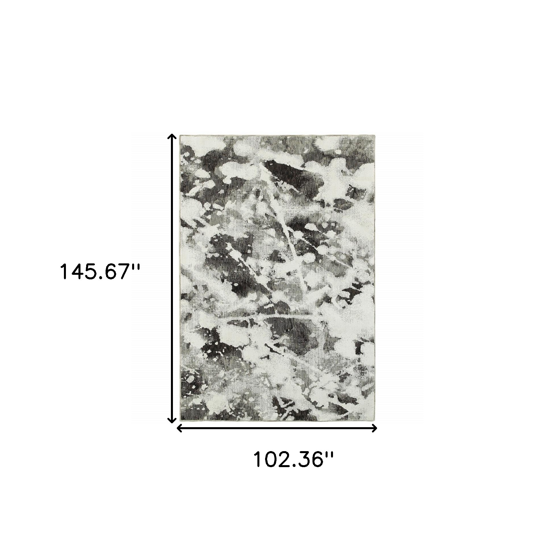 Add some artistry to your room with this 9-foot x 12-foot gray and white abstract power loom area rug. This rectangle shaped rug features a abstract design in gray and white to give it visual interest. A classic shape marries with good looking design for your space the coloring of this rug adds a delightfully neutral tone to your home and will easily match with most any decor. Ideal for spaces with kids and pets, this rug is stain resistant to help repel stains and spilled liquids. Place this area rug against a hardwood or tile floor and it will enliven your living space with style and sophistication. 102.36-inch H x 145.67-inch W x 0.55-inch D