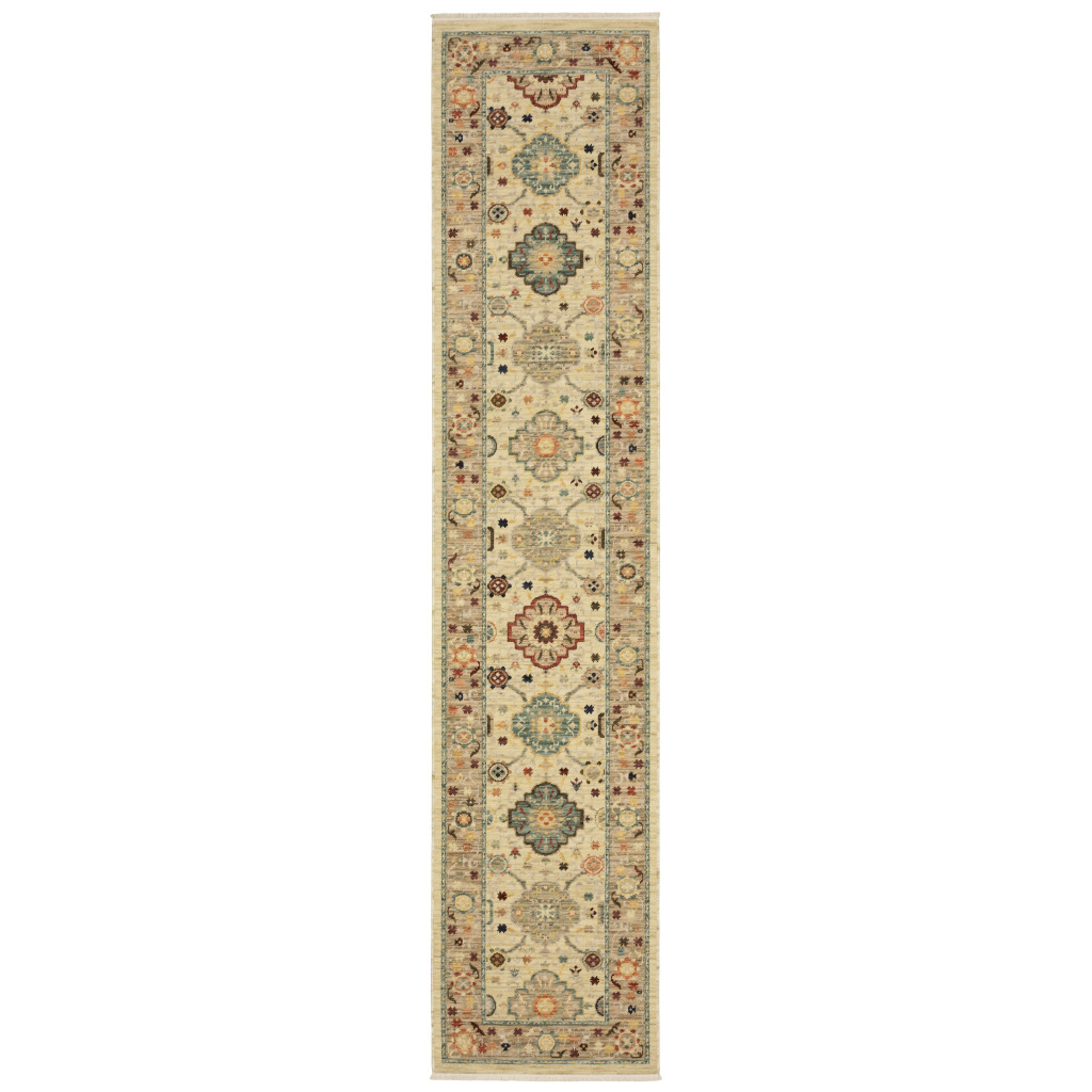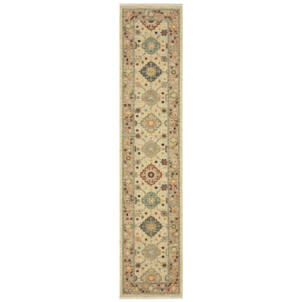 Add some artistry to your room with this 12-foot beige and ivory genuine wool oriental runner rug with fringe. Ideal for spaces with kids and pets, this rug is stain resistant to help repel dirt and spilled liquids. Crafted from genuine wool fibers that give this piece premium texture, refinement, and appeal. Rugs are a great way to showcase your style, hide imperfections, warm your home and reduce noise. This rectangular shaped rug features a abstract design that will add a functional and decorative accent to your space. Tassel ends bring a timeless and fashionable look to your interior. 30.71-inch h x 145.67-inch w x 0.31-inch d.