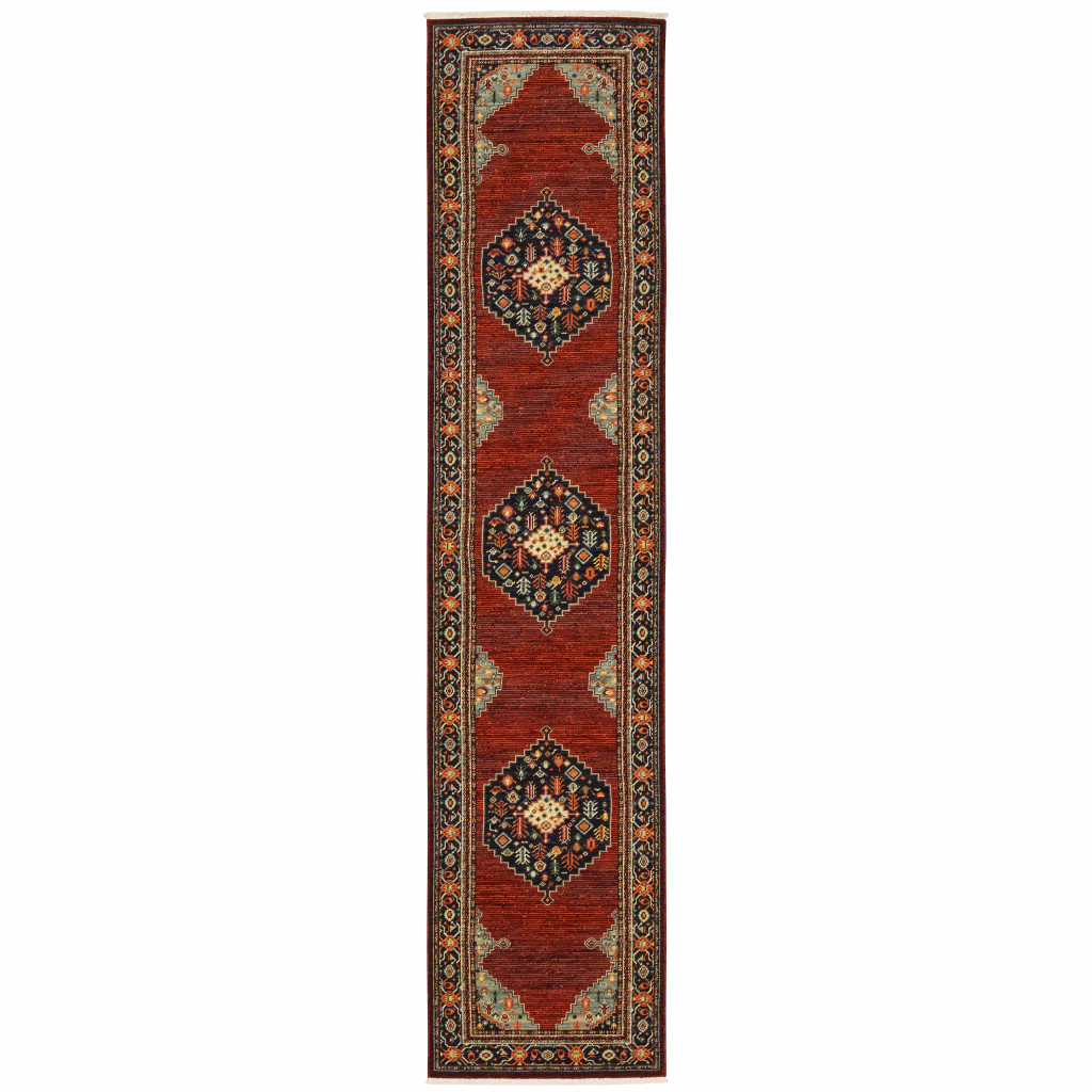 Lilihan Traditional Oriental Medallion 5503M 2'6X12' Runner Red/ Blue Power-Loomed Indoor Rug