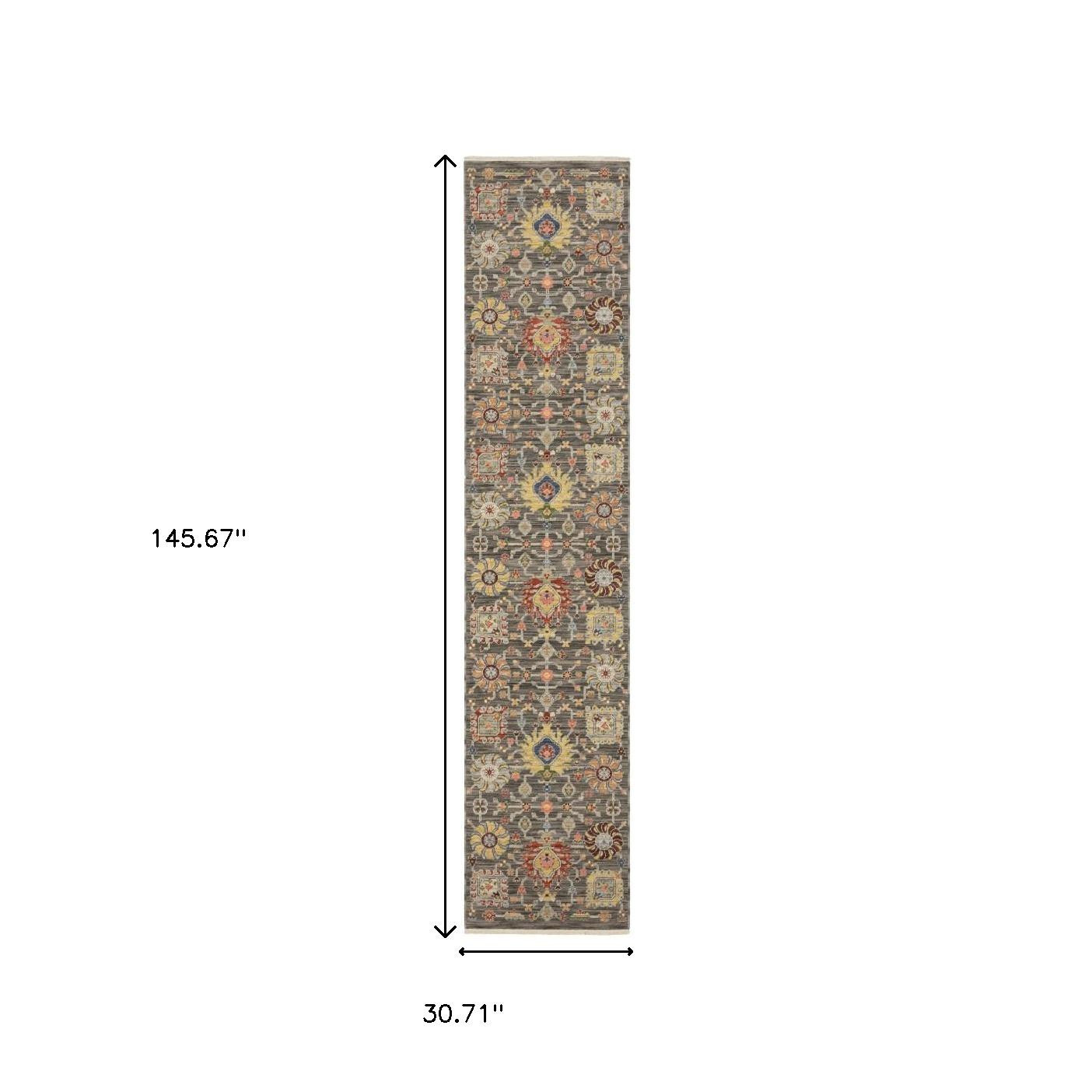 Lucca Traditional Oriental 8111K 2'6X12' Runner Grey/ Multi Power-Loomed Indoor Rug
