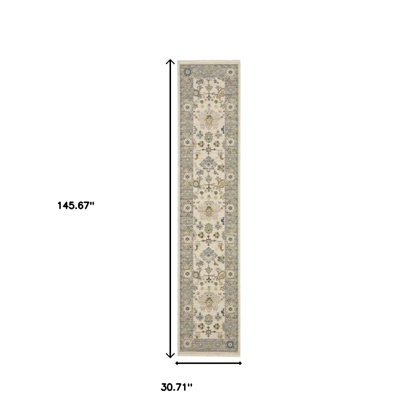 Add great coloration and comfortable texture to your space with this 12-foot blue and ivory genuine wool oriental runner rug with fringe. Ideal for spaces with kids and pets, this rug is stain resistant to help repel dirt and spilled liquids. Crafted from genuine wool fibers that give this piece premium texture, refinement, and appeal. Rugs are a great way to showcase your style, hide imperfections, warm your home and reduce noise. This rectangular shaped rug features a abstract design that will add a functional and decorative accent to your space. Tassel ends bring a timeless and fashionable look to your interior. 30.71-inch h x 145.67-inch w x 0.31-inch d.