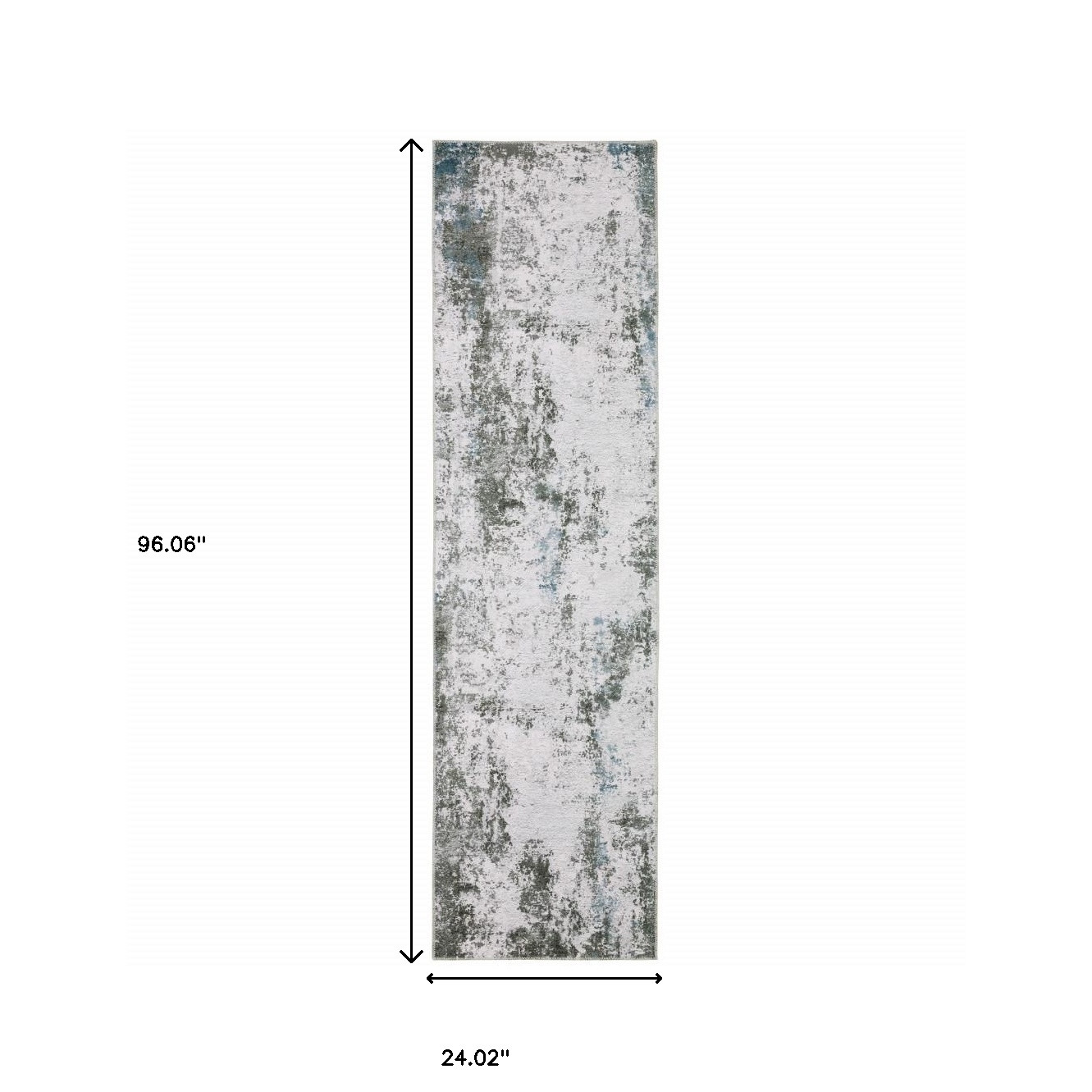 Set an inviting tone in your space with this 2' x 8' gray and ivory abstract printed stain resistant non skid runner rug. This runner shaped rug features a abstract design in gray and ivory to give it visual interest. A classic shape marries with good looking design for your space Ideal for spaces with kids and pets, this rug is stain resistant to help repel stains and spilled liquids. Area Rugs help to give warmth and sense of home to your space. 0.12" H x 24.02" W x 96.06" D