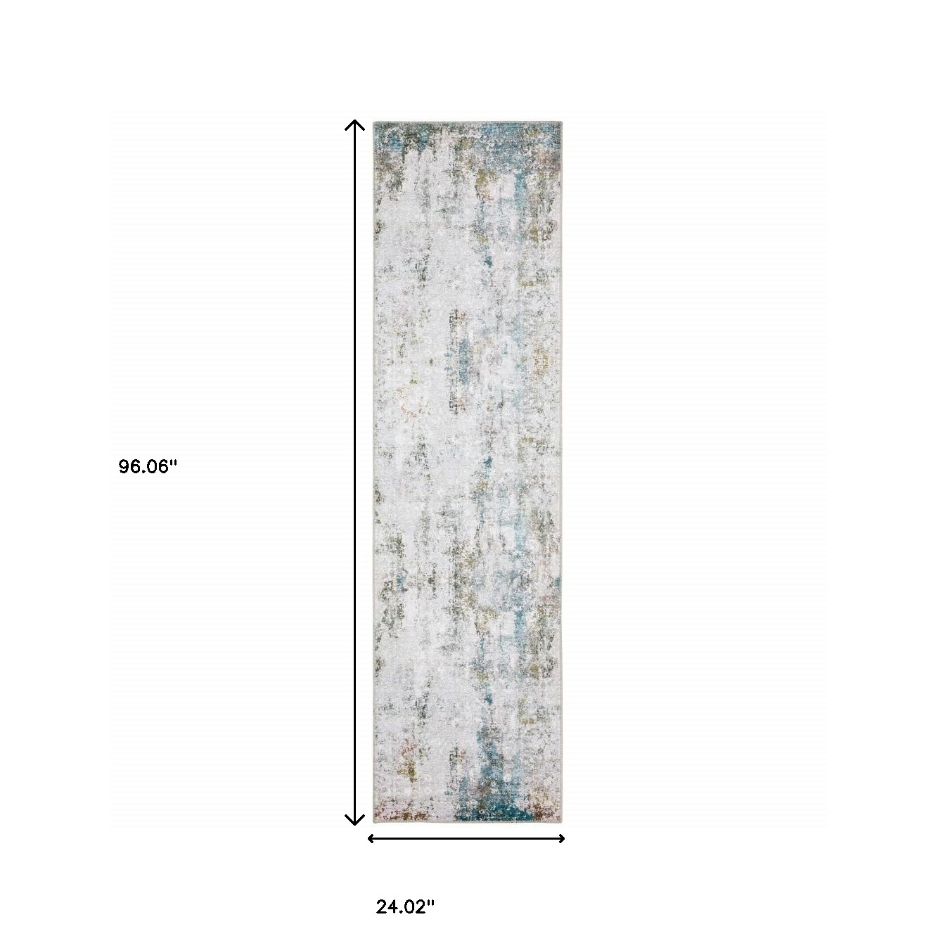 Set an inviting tone in your space with this 2' x 8' ivory and blue abstract printed stain resistant non skid runner rug. This runner shaped rug features a abstract design in ivory and blue to give it visual interest. A classic shape marries with good looking design for your space Ideal for spaces with kids and pets, this rug is stain resistant to help repel stains and spilled liquids. Area Rugs help to give warmth and sense of home to your space. 0.12" H x 24.02" W x 96.06" D