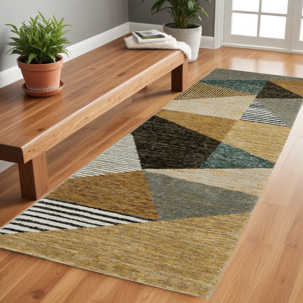 Strada Contemporary Geometric STR10 2'3X8' Runner Gold/ Multi Power-Loomed Indoor Rug