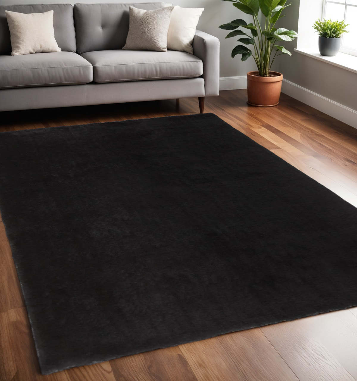 Add great coloration and comfortable texture to your space with this 5' x 8' black shag tufted handmade area rug. This rectangle shaped rug flaunts a black color that will be a great way to accent your space. Solid colors are versatile and will blend with any existing decor style. The coloration of this rug infuses an updated and modern vibe into your space. The retro shag construction of this luxurious rug will provide a soft and comfortable barrier to color tile and hardwood floors. Area Rugs help to give warmth and sense of home to your space. 1.57" H x 57" W x 90" D