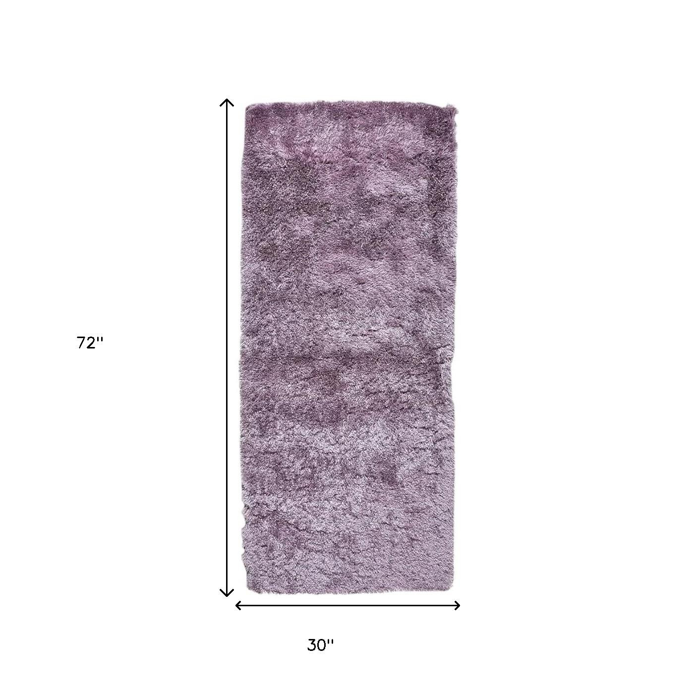Set an inviting tone in your space with this 6' purple shag tufted handmade runner rug. This runner shaped rug flaunts a purple color that will be a great way to accent your space. Solid colors are versatile and will blend with any existing decor style. The retro shag construction of this luxurious rug will provide a soft and comfortable barrier to color tile and hardwood floors. Place this area rug against a hardwood or tile floor and it will enliven your living space with style and sophistication. 1.57" H x 30" W x 72" D