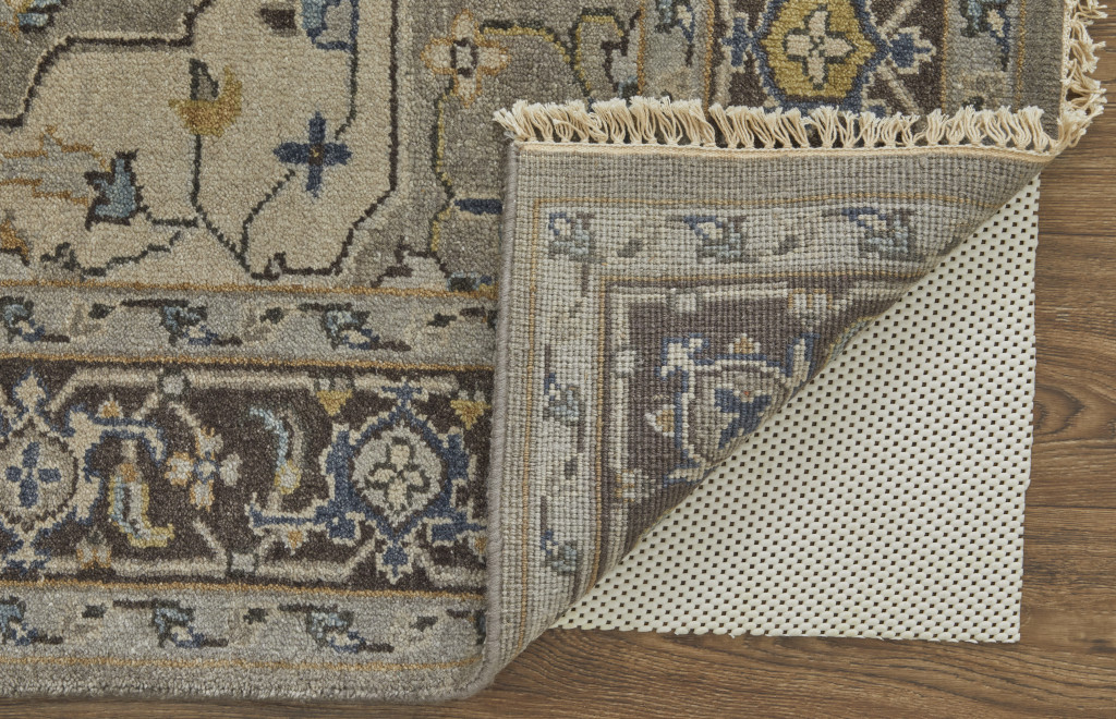 Add some artistry to your room with this 5-foot x 8-foot beige blue and gray wool medallion hand knotted area rug. Ideal for spaces with kids and pets, this rug is stain resistant to help repel dirt and spilled liquids. Crafted by skilled artisans, this hand knotted rug is genuine and unique. No two will be exactly alike. Rugs are a great way to showcase your style, hide imperfections, warm your home and reduce noise. This larger sized, transitional styled rug is ready to create a focal point or statement piece in your room. 66.00-inch h x 102.00-inch w x 0.37-inch d.