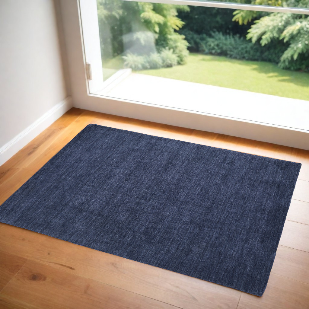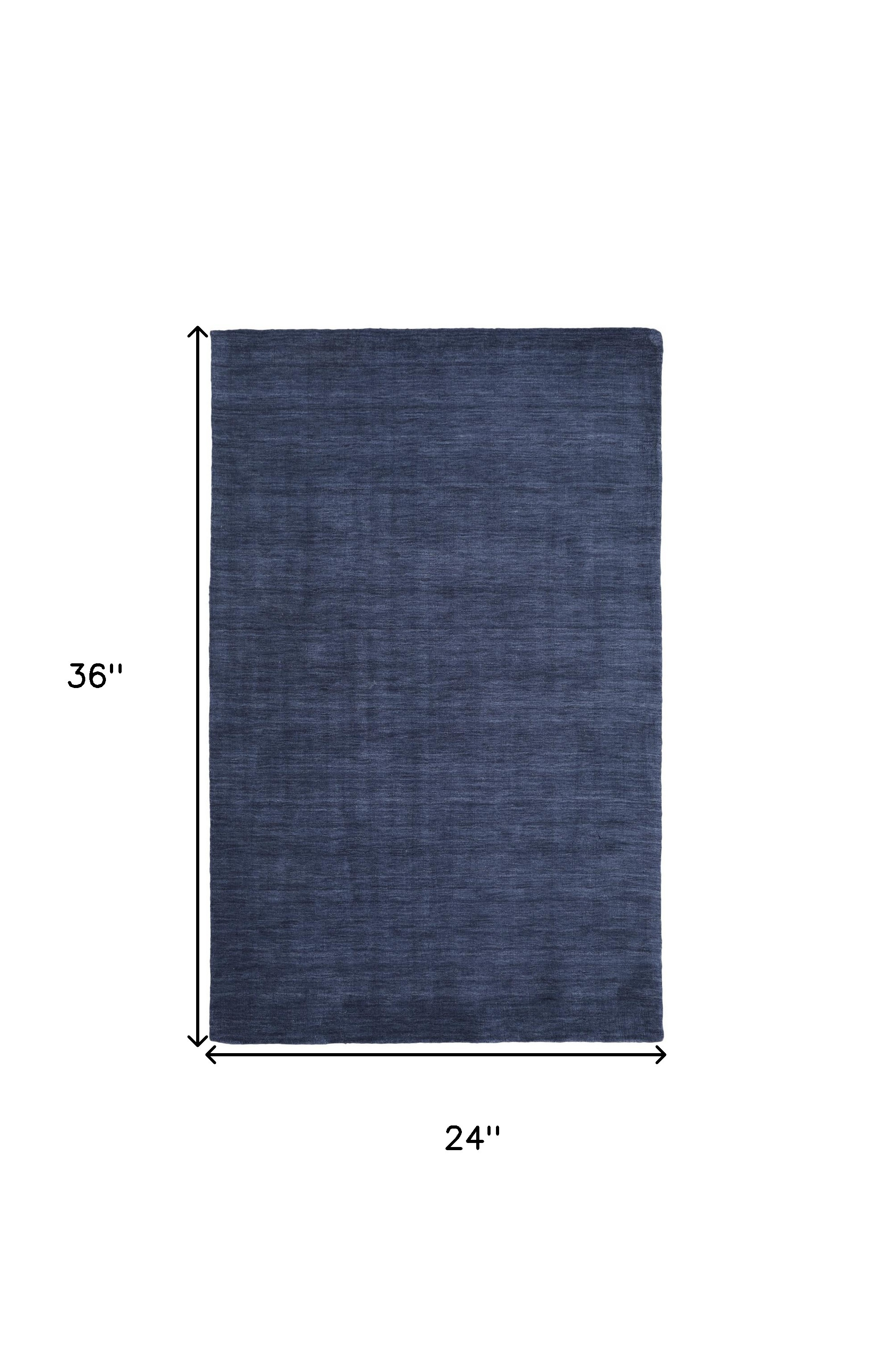 Set an inviting tone in your space with this 2-foot x 3-foot blue wool hand woven area rug. This rectangle shaped rug flaunts a blue color that will be a great way to accent your space. Solid colors are versatile and will blend with any existing decor style. Ideal for spaces with kids and pets, this rug is stain resistant to help repel stains and spilled liquids. Crafted by skilled artisans, this hand woven rug is genuine and unique. No two will be exactly alike. Place this area rug against a hardwood or tile floor and it will enliven your living space with style and sophistication. 24-inch H x 36-inch W x 0.52-inch D