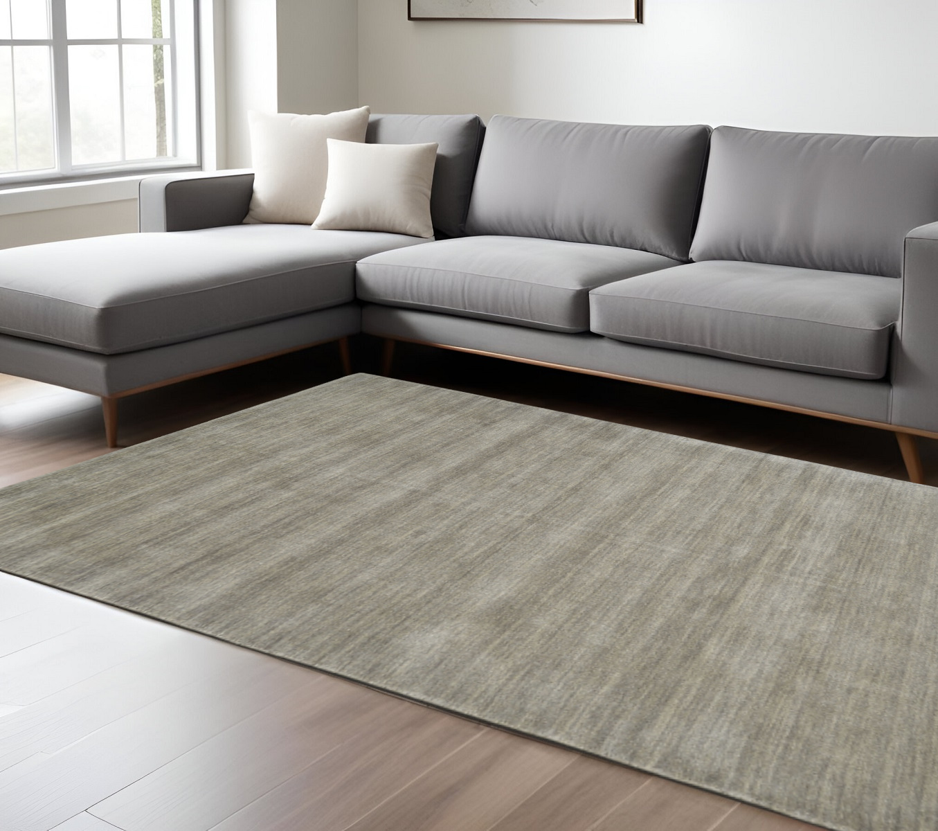 This 10-foot x 13-foot gray and ivory wool hand woven area rug, is a great way to add warmth to a room. This rectangle shaped rug flaunts a gray and ivory color that will be a great way to accent your space. Solid colors are versatile and will blend with any existing decor style. Ideal for spaces with kids and pets, this rug is stain resistant to help repel stains and spilled liquids. Crafted by skilled artisans, this hand woven rug is genuine and unique. No two will be exactly alike. Area rugs help to give warmth and sense of home to your space. 114-inch H x 162-inch W x 0.52-inch D