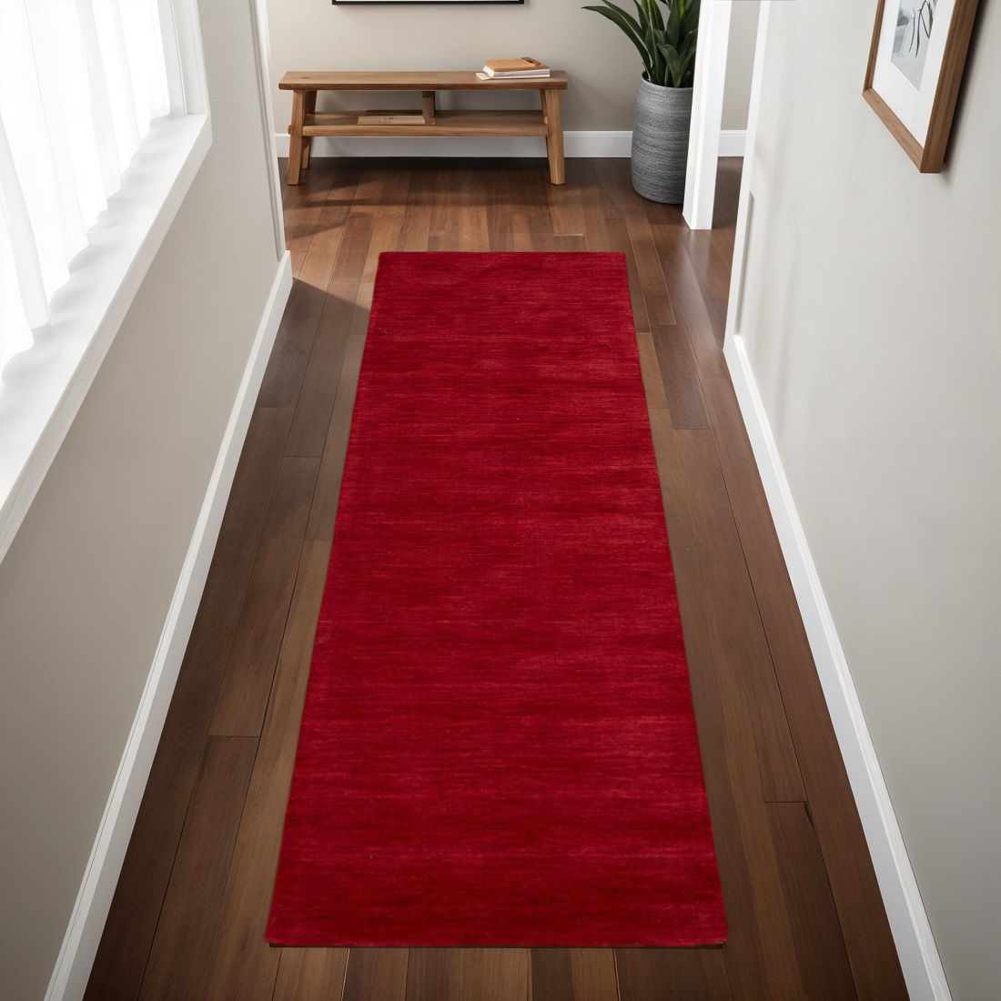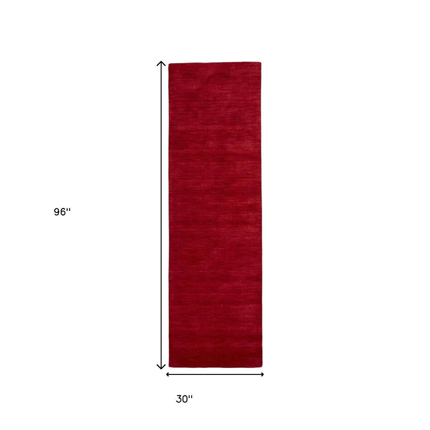 Add some artistry to your room with this 8-foot red hand woven runner rug. Ideal for spaces with kids and pets, this rug is stain resistant to help repel dirt and spilled liquids. Crafted by skilled artisans, this hand woven rug is genuine and unique. No two will be exactly alike. Crafted from wool blend fibers that give this piece premium texture, refinement, and appeal. Rugs are a great way to showcase your style, hide imperfections, warm your home and reduce noise. This runner shaped rug flaunts a red color that will be a great way to accent your space. Solid colors are versatile and will blend with any existing decor style. This transitional style runner makes a great accent for the hallway, in front of cabinets, in the laundry room, or any other space you need a narrow and long rug. 30-inch h x 96-inch w x 0.52-inch d.
