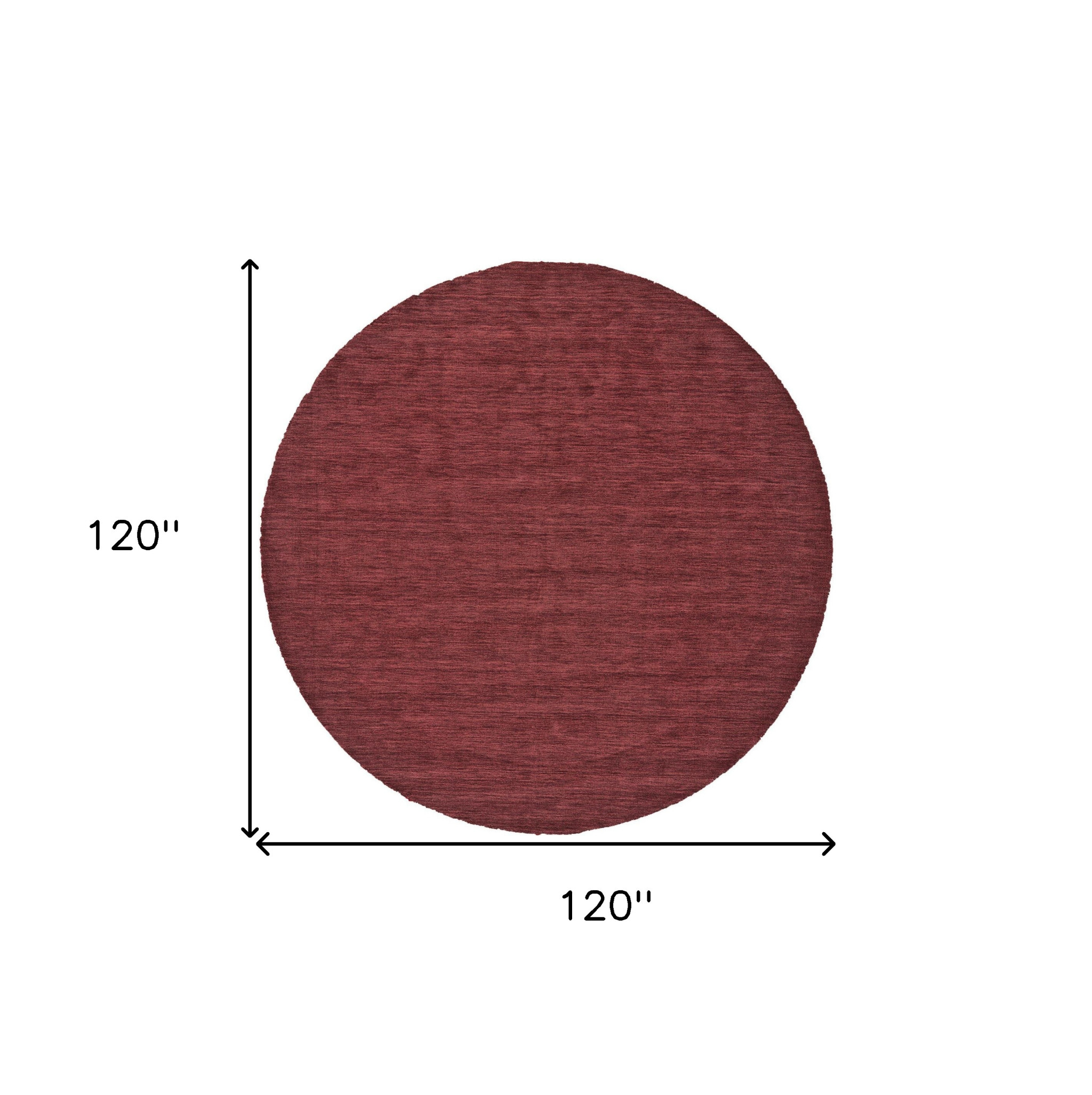 Add great coloration and comfortable texture to your space with this 10-foot red round wool hand woven area rug. This geometric round shaped rug features a solid color that combines hue and shape for a great look. Solid colors are versatile and will blend with any existing decor style. Ideal for spaces with kids and pets, this rug is stain resistant to help repel stains and spilled liquids. Crafted by skilled artisans, this hand woven rug is genuine and unique. No two will be exactly alike. Area rugs help to give warmth and sense of home to your space. 120-inch H x 120-inch W x 0.52-inch D