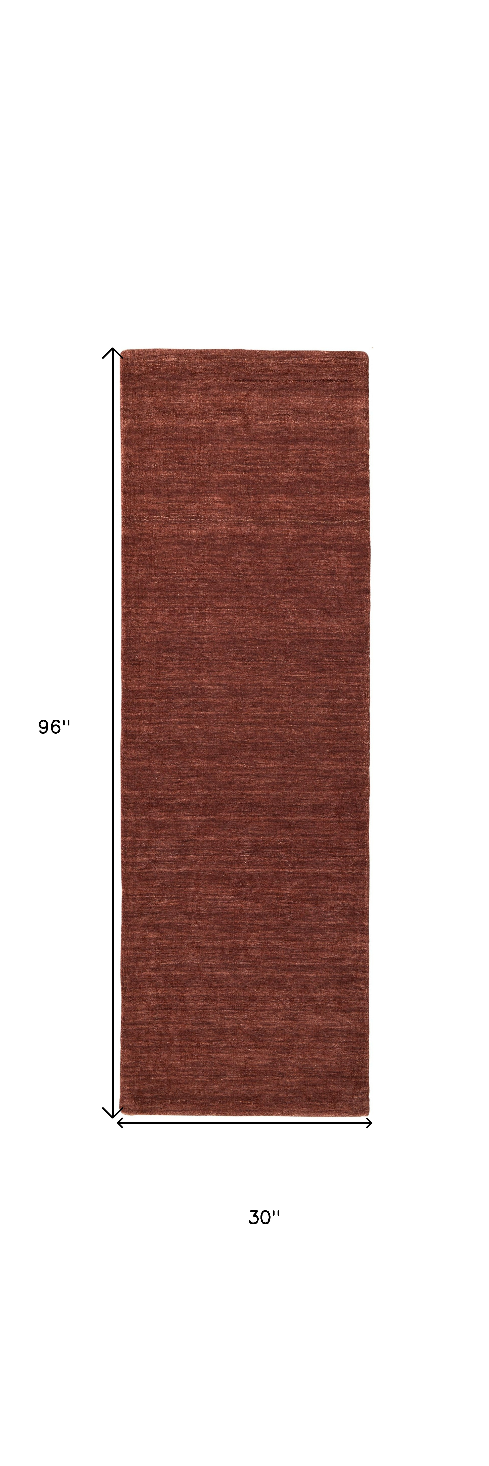This 8' orange and red wool hand woven stain resistant runner rug, is a great way to add warmth to a room. This runner shaped rug flaunts a orange and red color that will be a great way to accent your space. Solid colors are versatile and will blend with any existing decor style. Ideal for spaces with kids and pets, this rug is stain resistant to help repel stains and spilled liquids. Crafted by skilled artisans, this hand woven rug is genuine and unique. No two will be exactly alike. Area Rugs help to give warmth and sense of home to your space. 0.52" H x 30" W x 96" D
