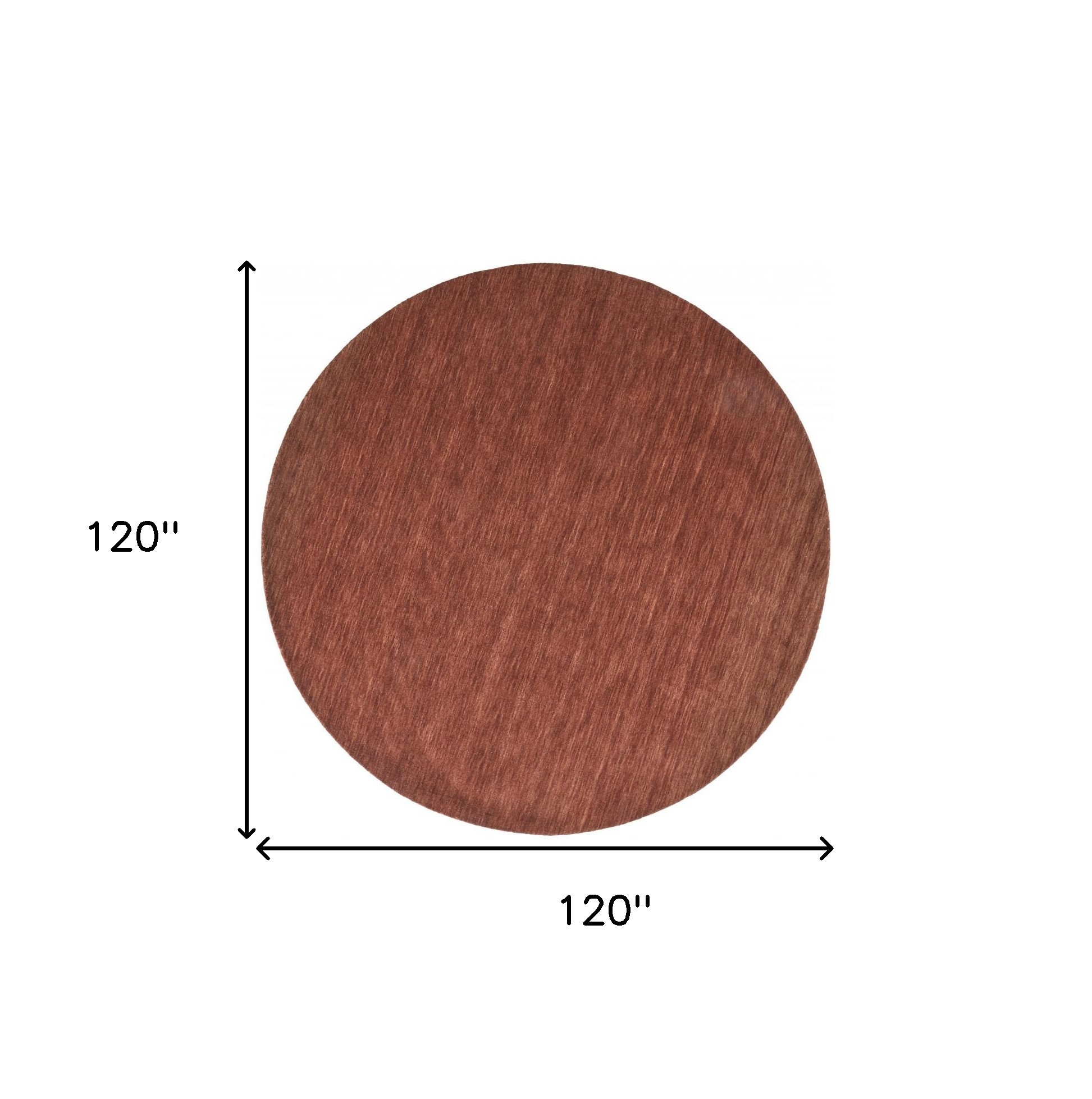 Set an inviting tone in your space with this 10-foot orange and red round wool hand woven area rug. Crafted by skilled artisans, this hand woven rug is genuine and unique. No two will be exactly alike. This geometric round shaped rug features a solid color that combines hue and shape for a great look. Solid colors are versatile and will blend with any existing decor style. Ideal for spaces with kids and pets, this rug is stain resistant to help repel dirt and spilled liquids. This smaller sized rug is just what you need for your walkway, or in front of door, cabinet, refrigerator, or chair. 120-inch h x 120-inch w x 0.52-inch d