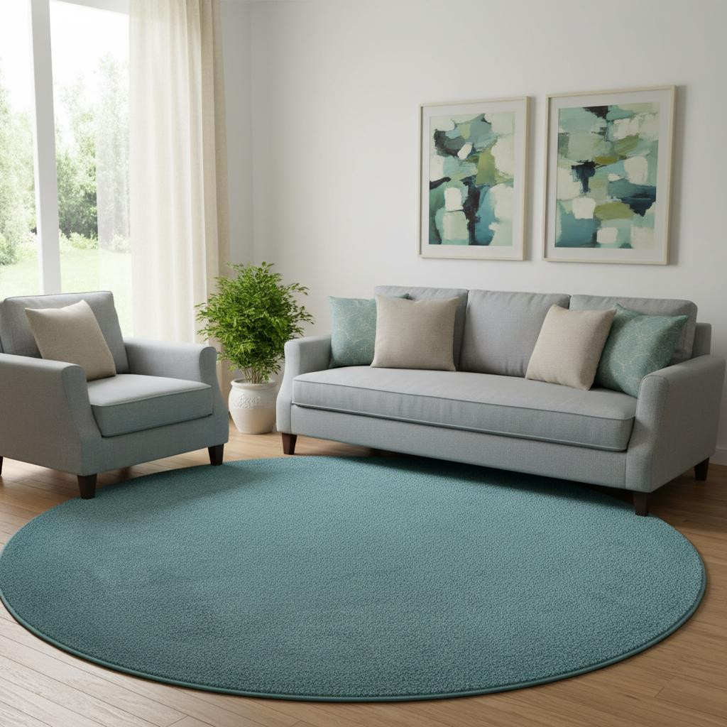 This 10-foot blue and green round wool hand woven stain resistant area rug, is a great way to add warmth to a room. Crafted by skilled artisans, this hand woven rug is genuine and unique. No two will be exactly alike. This geometric round shaped rug features a solid color that combines hue and shape for a great look. Solid colors are versatile and will blend with any existing decor style. Ideal for spaces with kids and pets, this rug is stain resistant to help repel dirt and spilled liquids. The retro shag construction of this luxurious rug will provide a soft and comfortable barrier to color tile and hardwood floors. This smaller sized rug is just what you need for your walkway, or in front of door, cabinet, refrigerator, or chair. 120-inch h x 120-inch w x 0.52-inch d