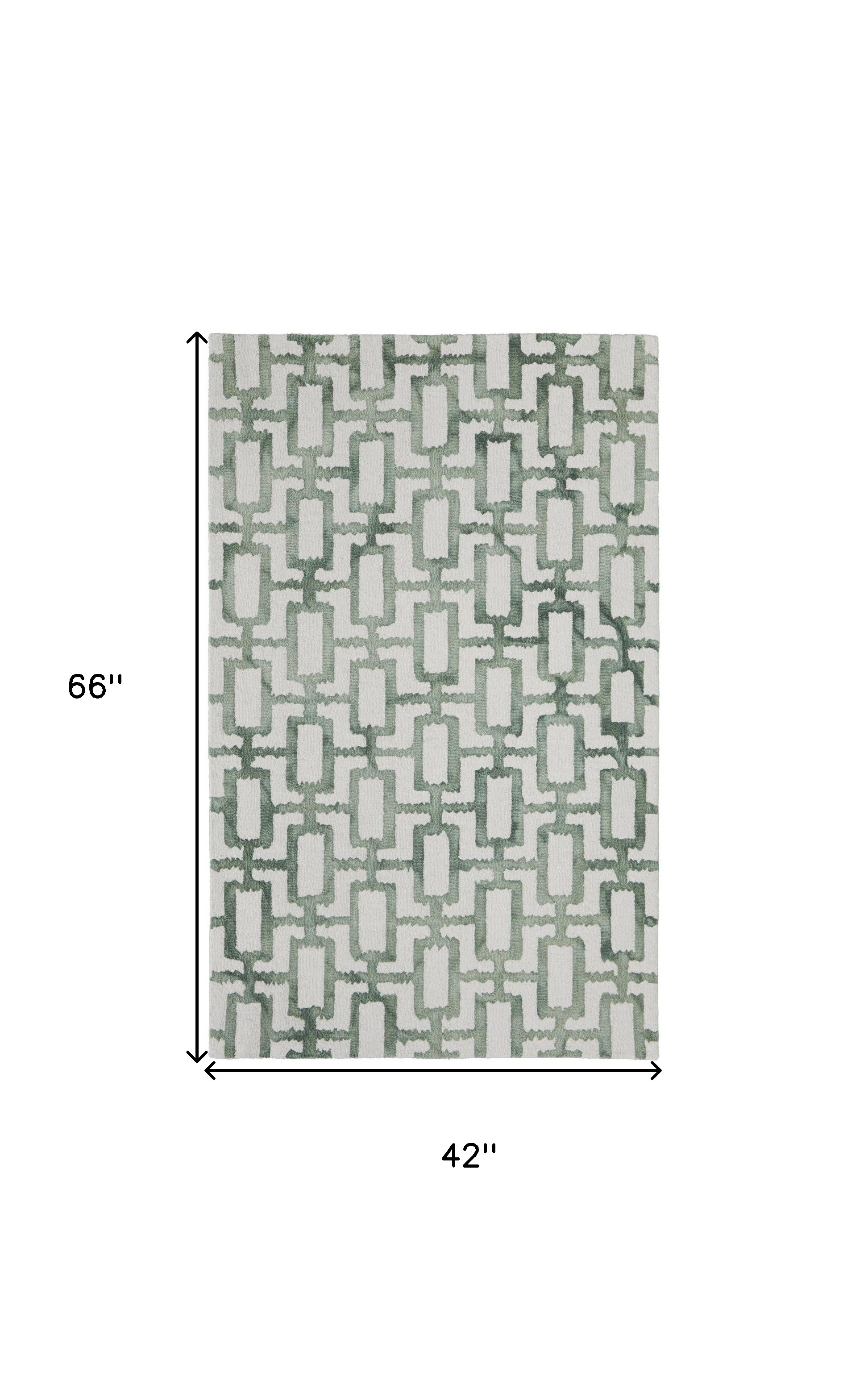 Set an inviting tone in your space with this 4' x 6' ivory and green wool geometric tufted handmade area rug. This rectangle shaped rug features a geometric design in ivory and green to give it visual interest. A classic shape marries with good looking design for your space Place this area rug against a hardwood or tile floor and it will enliven your living space with style and sophistication. 0.23" H x 42" W x 66" D