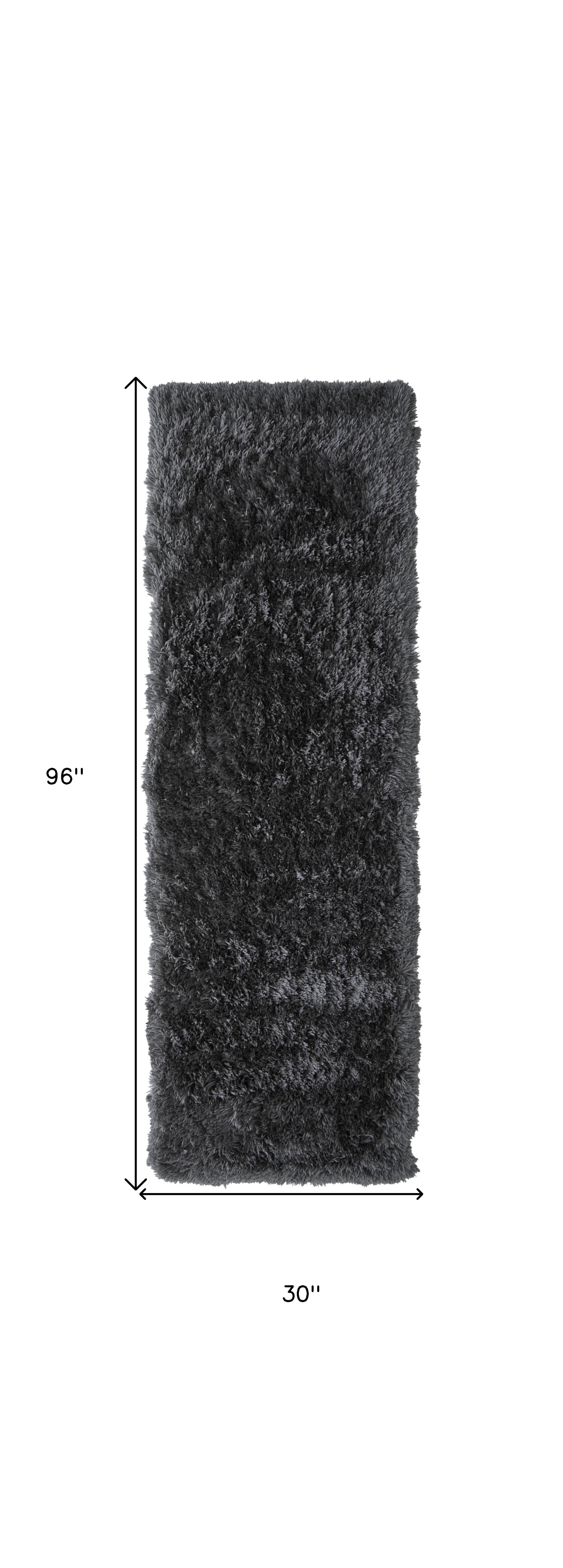 Add some artistry to your room with this 8-foot gray shag hand tufted runner rug. This runner shaped rug flaunts a gray color that will be a great way to accent your space. Solid colors are versatile and will blend with any existing decor style. Ideal for spaces with kids and pets, this rug is stain resistant to help repel dirt and spilled liquids. The retro shag construction of this luxurious rug will provide a soft and comfortable barrier to color tile and hardwood floors. This smaller sized rug is just what you need for your walkway, or in front of door, cabinet, refrigerator, or chair. 30-inch h x 96-inch w x 3.15-inch d