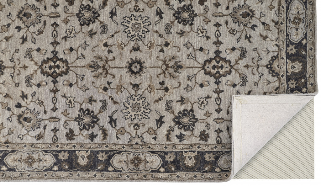 Add great coloration and comfortable texture to your space with this 8' x 11' gray ivory and taupe wool floral tufted handmade stain resistant area rug. This rectangle shaped rug features a floral design in gray ivory and taupe to give it visual interest. A classic shape marries with good looking design for your space Ideal for spaces with kids and pets, this rug is stain resistant to help repel stains and spilled liquids. Area Rugs help to give warmth and sense of home to your space. 0.39" H x 96" W x 132" D