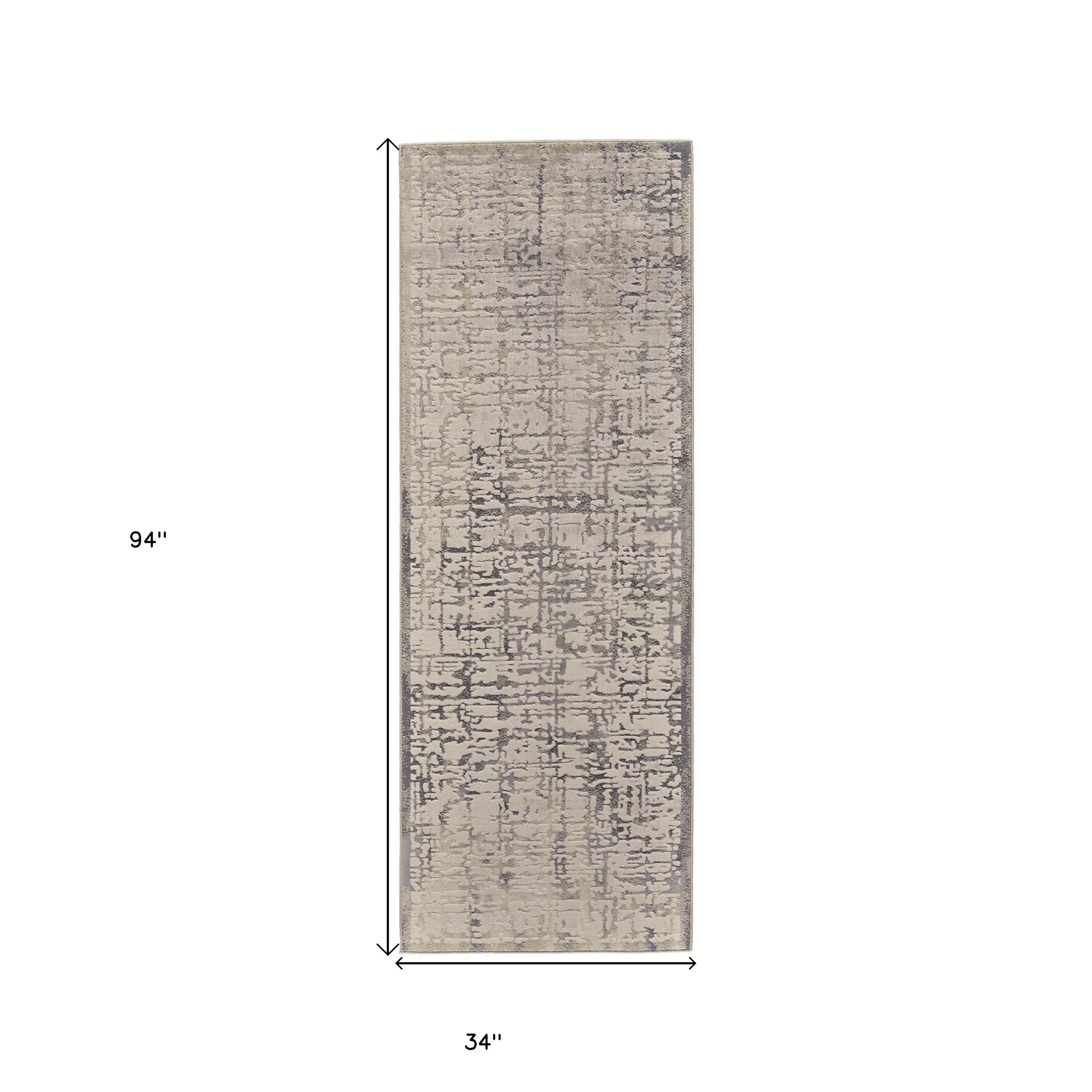 Add some artistry to your room with this 8' gray and ivory abstract runner rug. This runner shaped rug features a abstract design in gray and ivory to give it visual interest. A classic shape marries with good looking design for your space Made in Turkey, this rug offers high quality combined with good looking designer sensibilities. Ideal for spaces with kids and pets, this rug is stain resistant to help repel stains and spilled liquids. Place this area rug against a hardwood or tile floor and it will enliven your living space with style and sophistication. 0.39" H x 34" W x 94" D