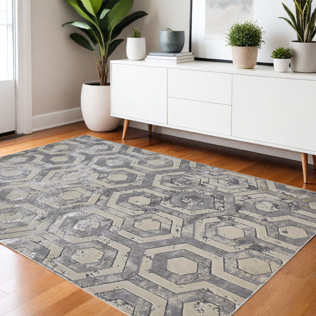 This 4-foot x 6-foot gray taupe and silver abstract area rug, is a great way to add warmth to a room. Built to last, this rug crafted from polyester fibers is known for its durability and long lasting appeal. Rugs are a great way to showcase your style, hide imperfections, warm your home and reduce noise. 47.00-inch h x 72.00-inch w x 0.39-inch d.