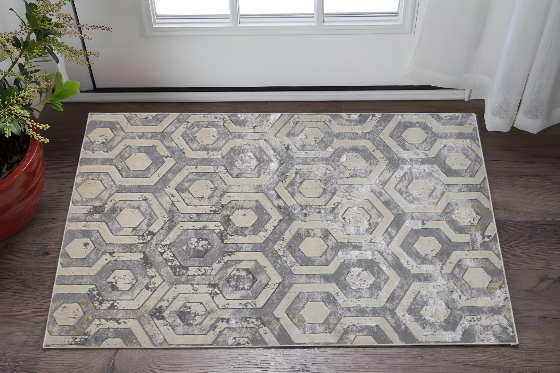 Add great coloration and comfortable texture to your space with this 2-foot x 3-foot gray taupe and silver abstract area rug. Ideal for spaces with kids and pets, this rug is stain resistant to help repel dirt and spilled liquids. Built to last, this rug crafted from polyester fibers is known for its durability and long lasting appeal. Rugs are a great way to showcase your style, hide imperfections, warm your home and reduce noise. 20.00-inch h x 34.00-inch w x 0.39-inch d.
