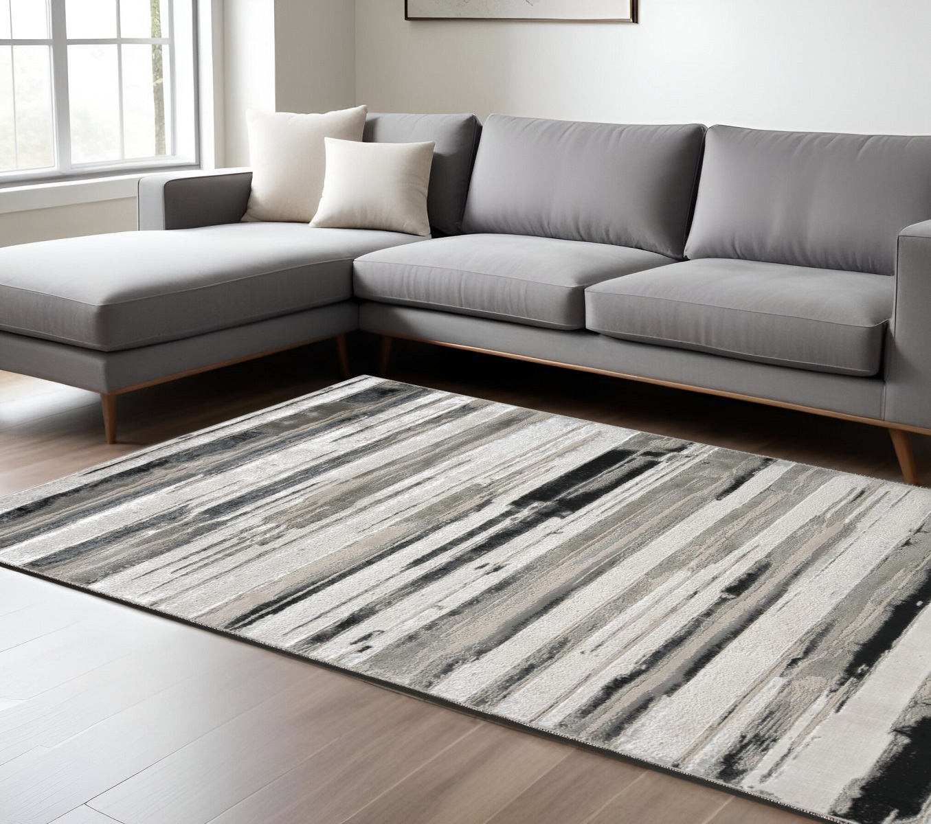 Add great coloration and comfortable texture to your space with this 8-foot x 10-foot black and silver abstract non skid area rug. This rectangle shaped rug features a abstract design in black and silver to give it visual interest. A classic shape marries with good looking design for your space. 96-inch H x 120-inch W x 0.39-inch D