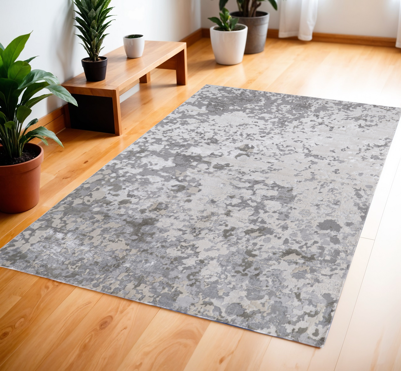 Add some artistry to your room with this 4' x 6' silver gray and white abstract area rug. This rectangle shaped rug features a abstract design in silver gray and white to give it visual interest. A classic shape marries with good looking design for your space Made in Turkey, this rug offers high quality combined with good looking designer sensibilities. Place this area rug against a hardwood or tile floor and it will enliven your living space with style and sophistication. 0.39" H x 47" W x 72" D
