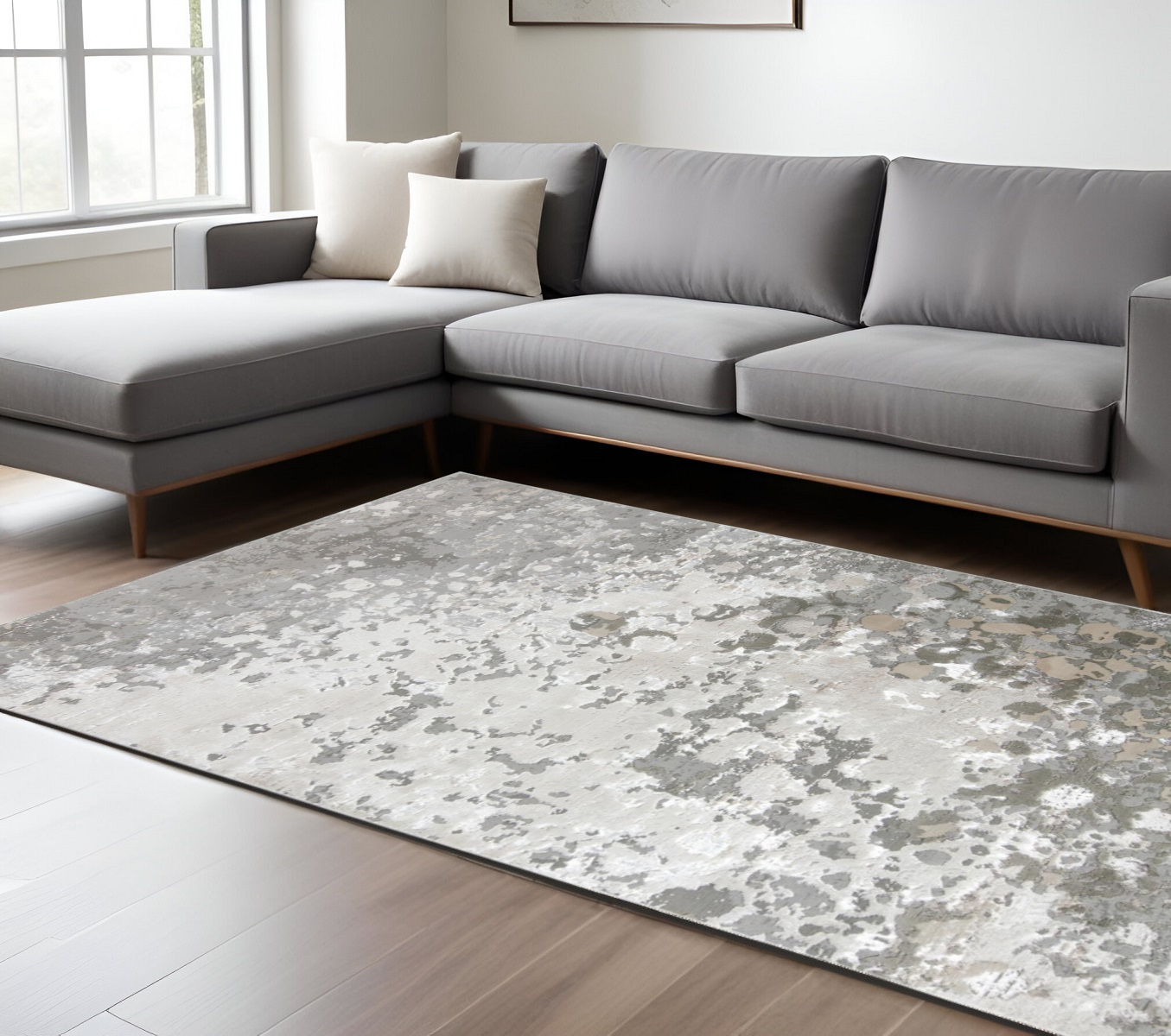 This 8-foot x 10-foot silver and gray abstract non skid area rug, is a great way to add warmth to a room. This rectangle shaped rug features a abstract design in silver and gray to give it visual interest. A classic shape marries with good looking design for your space. 96-inch H x 120-inch W x 0.39-inch D