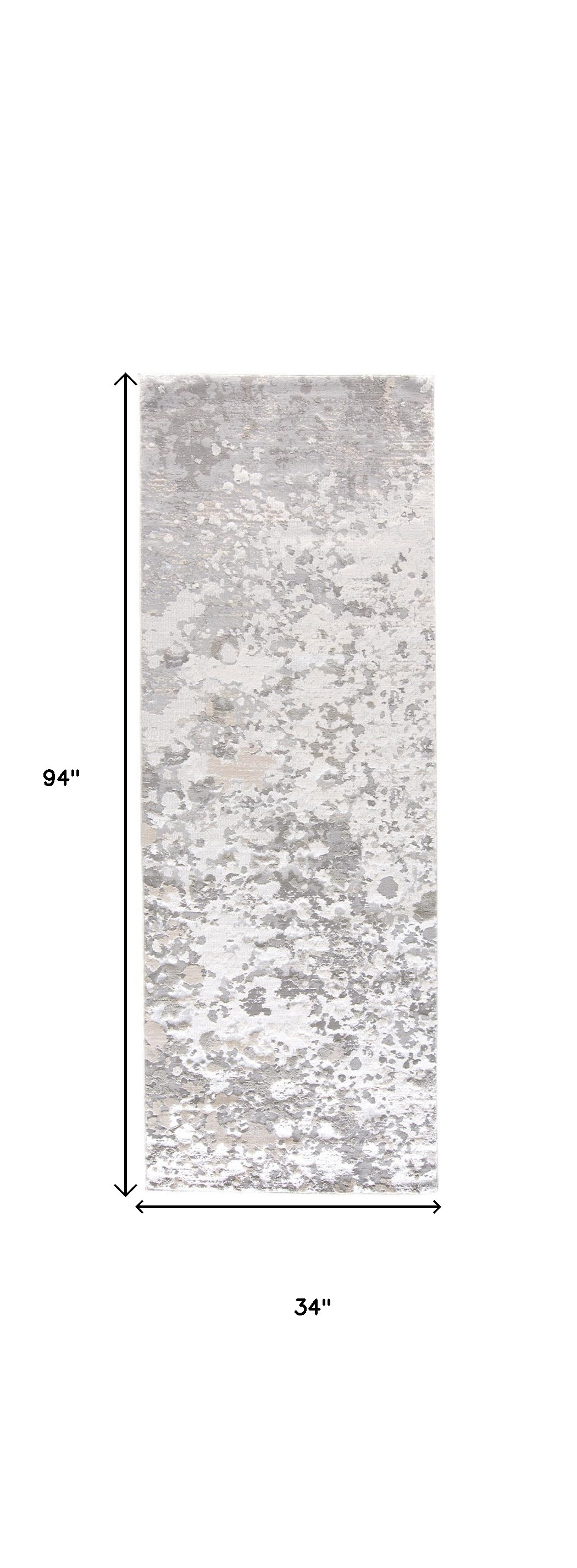 Add some artistry to your room with this 8-foot gray and silver abstract power loom runner rug. This runner shaped rug features a abstract design in gray and silver to give it visual interest. A classic shape marries with good looking design for your space ideal for spaces with kids and pets, this rug is stain resistant to help repel stains and spilled liquids. Area rugs help to give warmth and sense of home to your space. 34-inch H x 94-inch W x 0.39-inch D