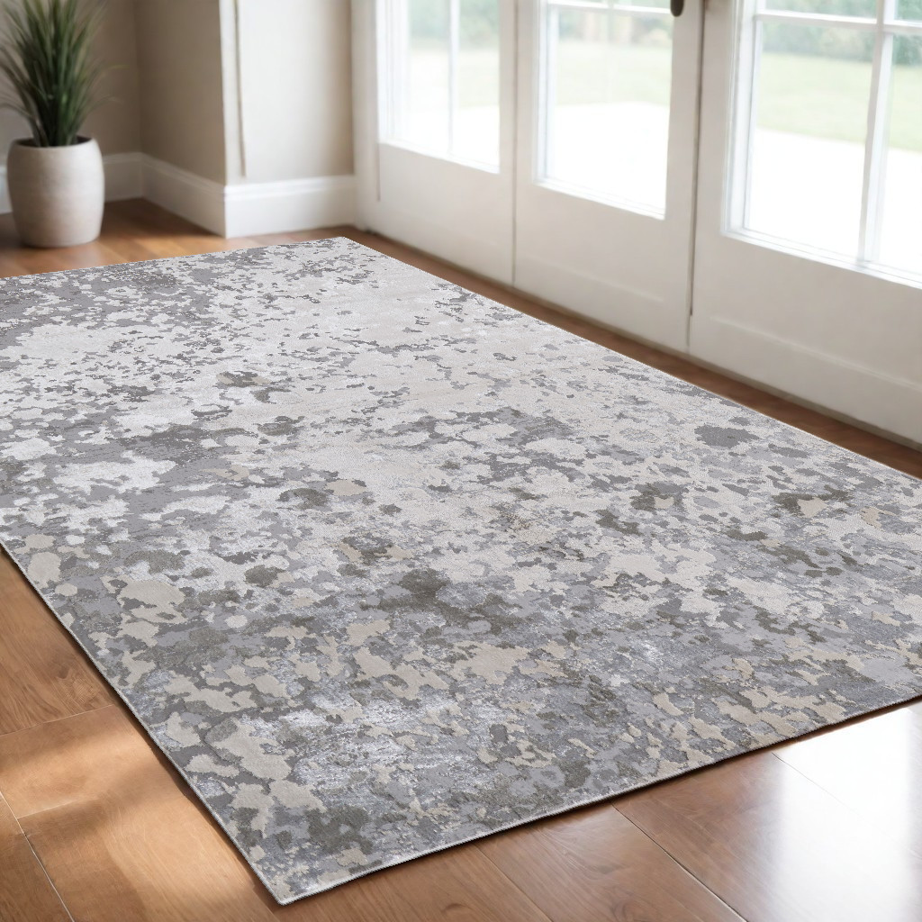 Add some artistry to your room with this 2' x 3' silver gray and white abstract stain resistant area rug. This rectangle shaped rug features a abstract design in silver gray and white to give it visual interest. A classic shape marries with good looking design for your space This superior Turkish rug represents the highest quality and is built to last. Ideal for spaces with kids and pets, this rug is stain resistant to help repel stains and spilled liquids. Place this area rug against a hardwood or tile floor and it will enliven your living space with style and sophistication. 0.39" H x 20" W x 34" D