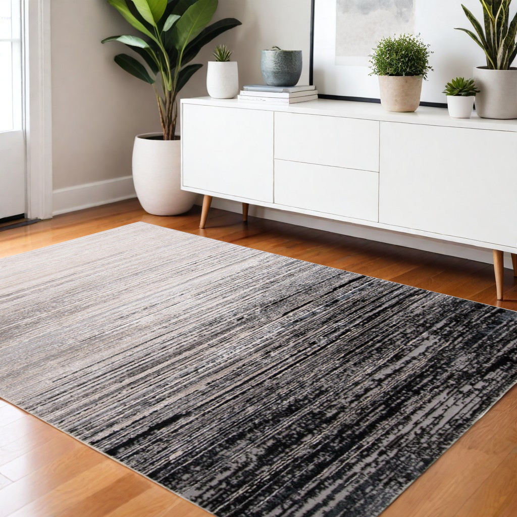 This 4-foot x 6-foot beige and black abstract non skid area rug, is a great way to add warmth to a room. This rectangle shaped rug features a abstract design in beige and black to give it visual interest. A classic shape marries with good looking design for your space. 47-inch H x 72-inch W x 0.39-inch D