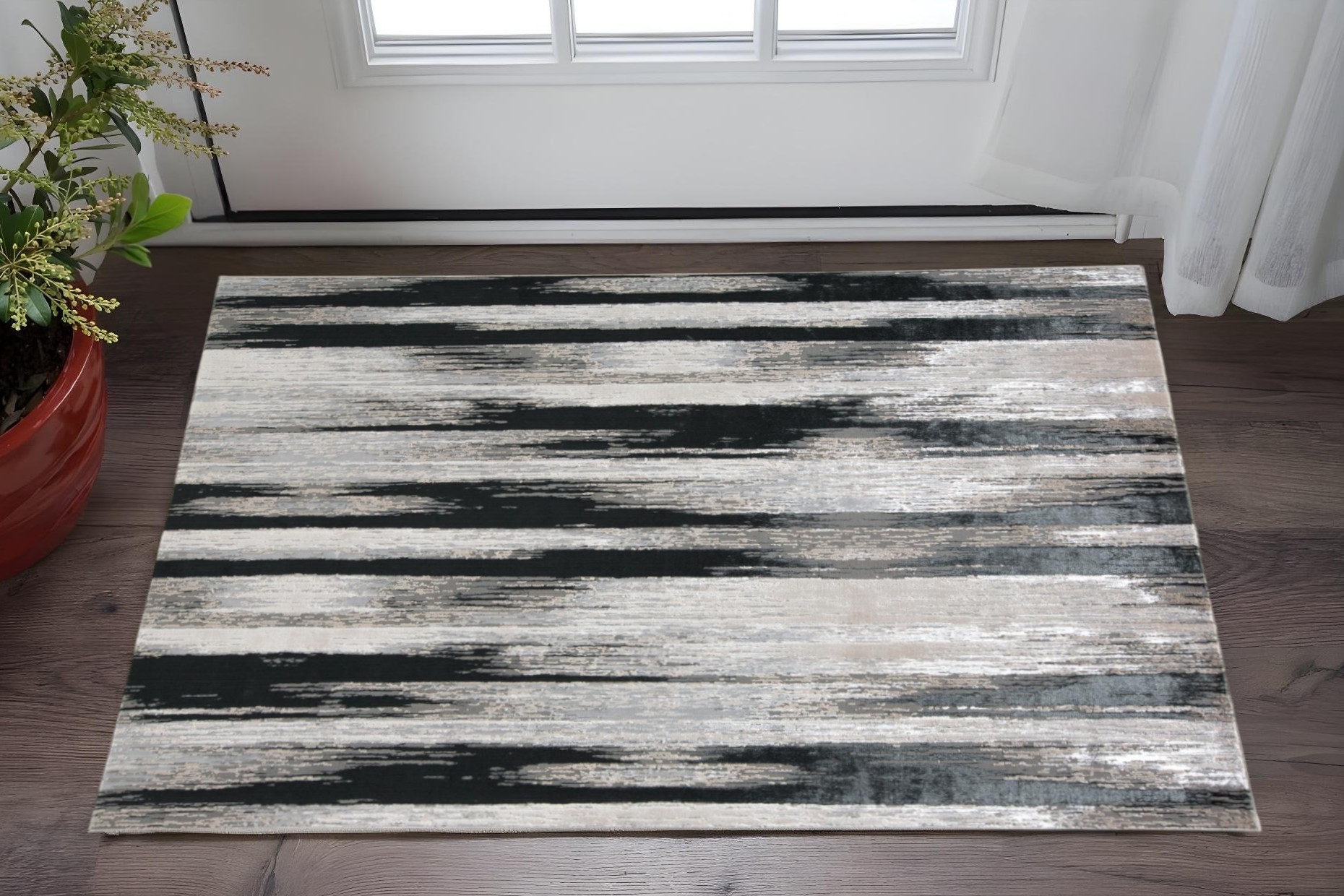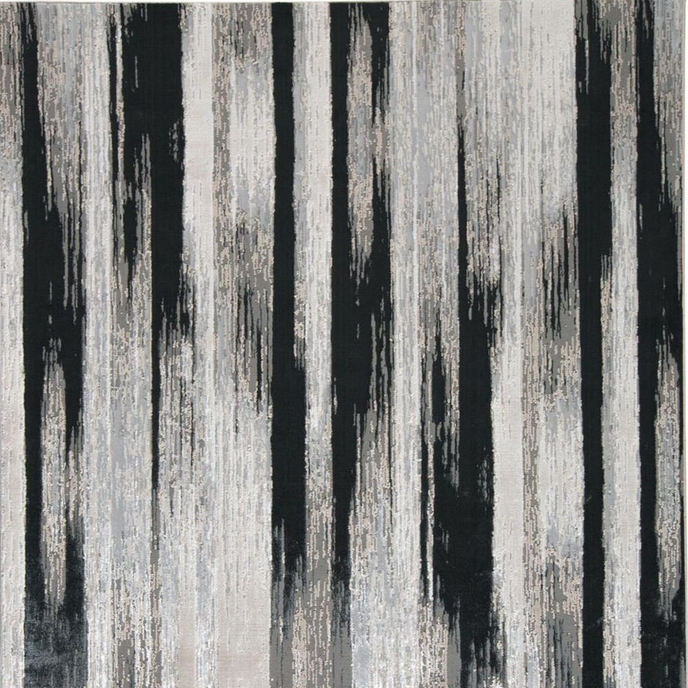 This 2-foot x 3-foot black silver and gray abstract power loom area rug, is a great way to add warmth to a room. This rectangle shaped rug features a abstract design in black silver and gray to give it visual interest. A classic shape marries with good looking design for your space ideal for spaces with kids and pets, this rug is stain resistant to help repel stains and spilled liquids. Place this area rug against a hardwood or tile floor and it will enliven your living space with style and sophistication. 20-inch H x 34-inch W x 0.39-inch D