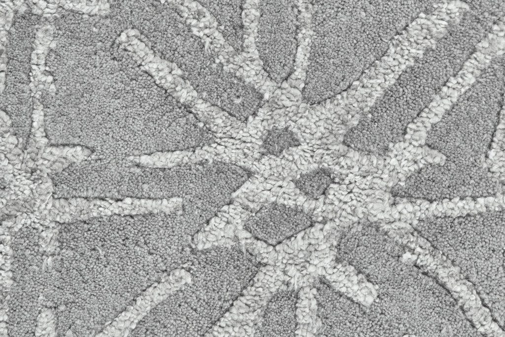 Set an inviting tone in your space with this 10' gray and silver round wool abstract tufted handmade area rug. This geometric round shaped rug features a abstract pattern in gray and silver that combines a good looking print with a unique and updated shape. The mix of shape, color, and design gives this rug refreshing visual interest. Place this area rug against a hardwood or tile floor and it will enliven your living space with style and sophistication. 0.31" H x 120" W x 120" D