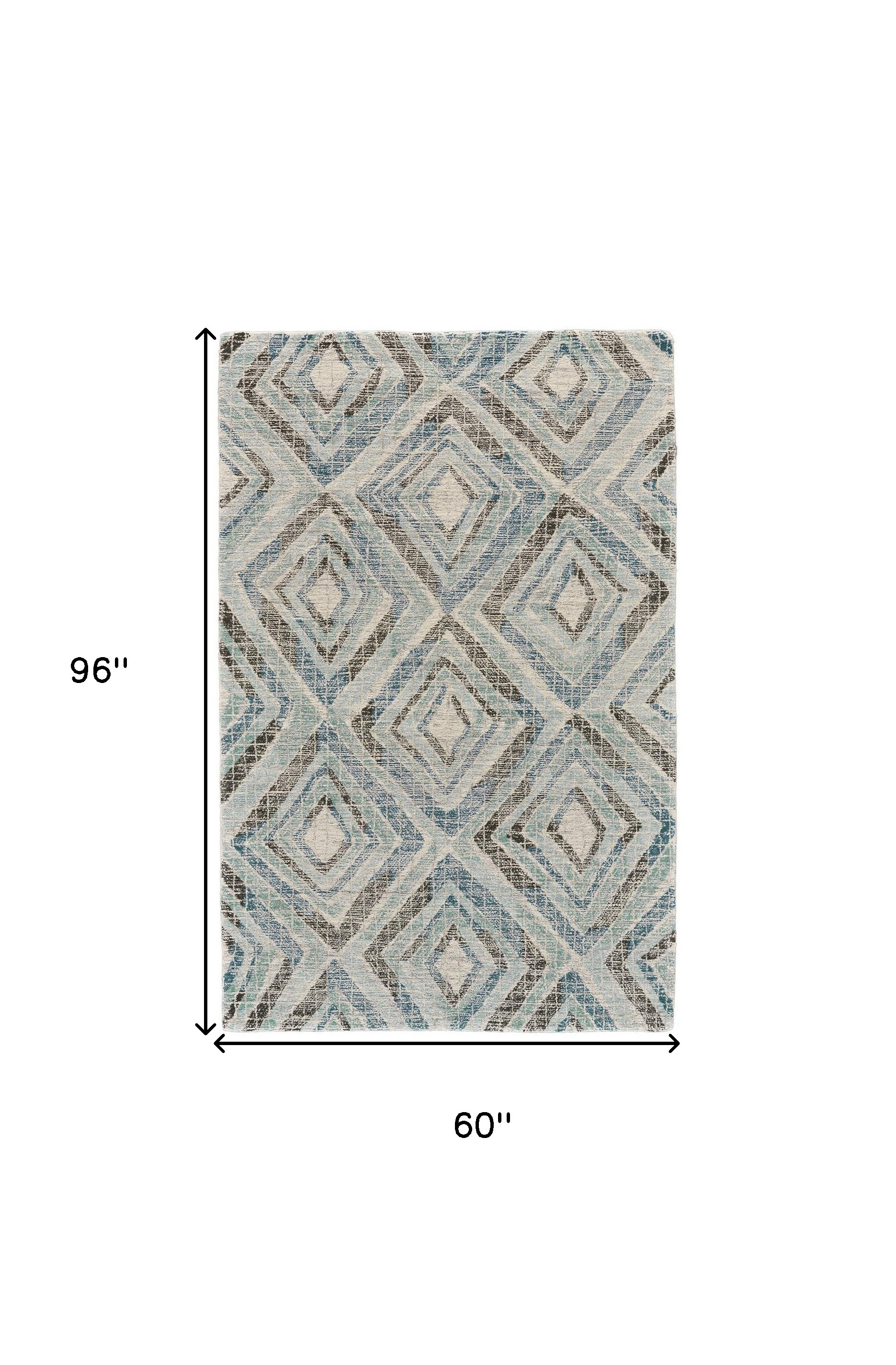 This 5' x 8' blue gray and ivory wool geometric tufted handmade area rug, is a great way to add warmth to a room. This rectangle shaped rug features a geometric design in blue gray and ivory to give it visual interest. A classic shape marries with good looking design for your space Area Rugs help to give warmth and sense of home to your space. 0.31" H x 60" W x 96" D