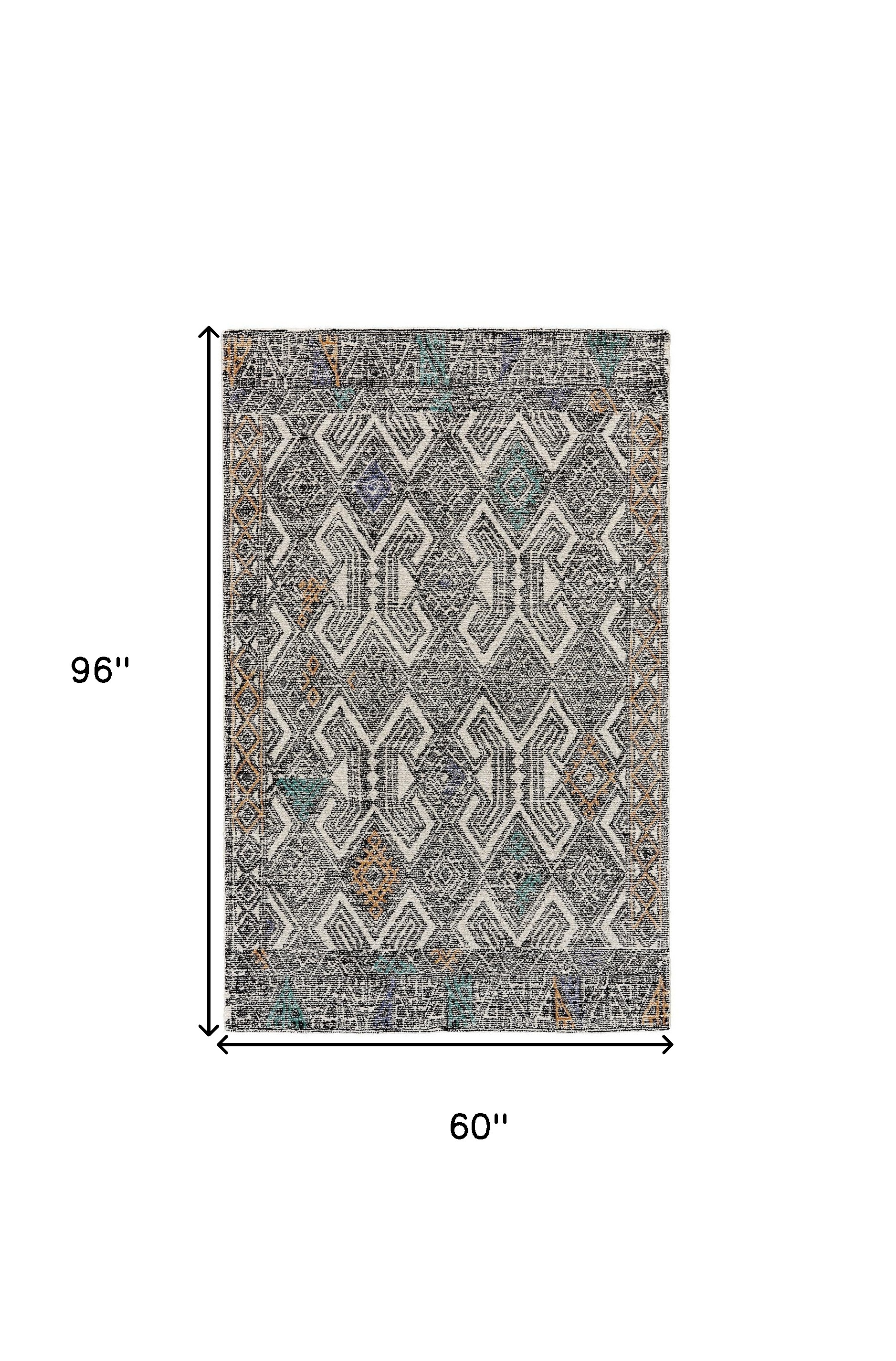 Add great coloration and comfortable texture to your space with this 5' x 8' black ivory and green wool geometric tufted handmade distressed area rug. This rectangle shaped rug features a geometric design in black ivory and green to give it visual interest. A classic shape marries with good looking design for your space Area Rugs help to give warmth and sense of home to your space. 0.31" H x 60" W x 96" D