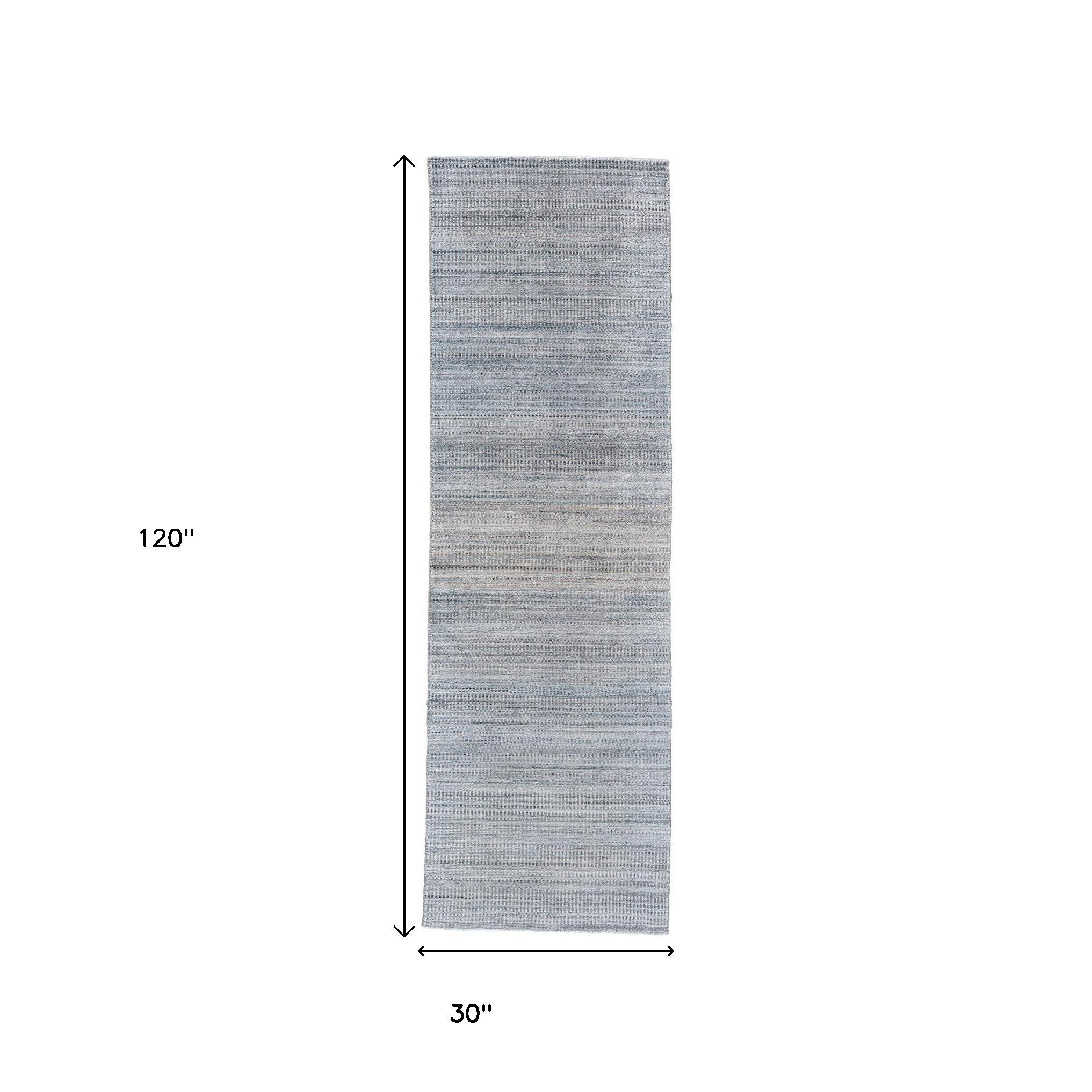 Add great coloration and comfortable texture to your space with this 10-foot gray and purple ombre hand woven runner rug. Crafted by skilled artisans, this hand woven rug is genuine and unique. No two will be exactly alike. Crafted from wool blend fibers that give this piece premium texture, refinement, and appeal. This runner shaped rug features a ombre design that will add a functional and decorative accent to your space. This smaller sized rug is just what you need for your walkway, or in front of door, cabinet, refrigerator, or chair. 30-inch h x 120-inch w x 0.31-inch d