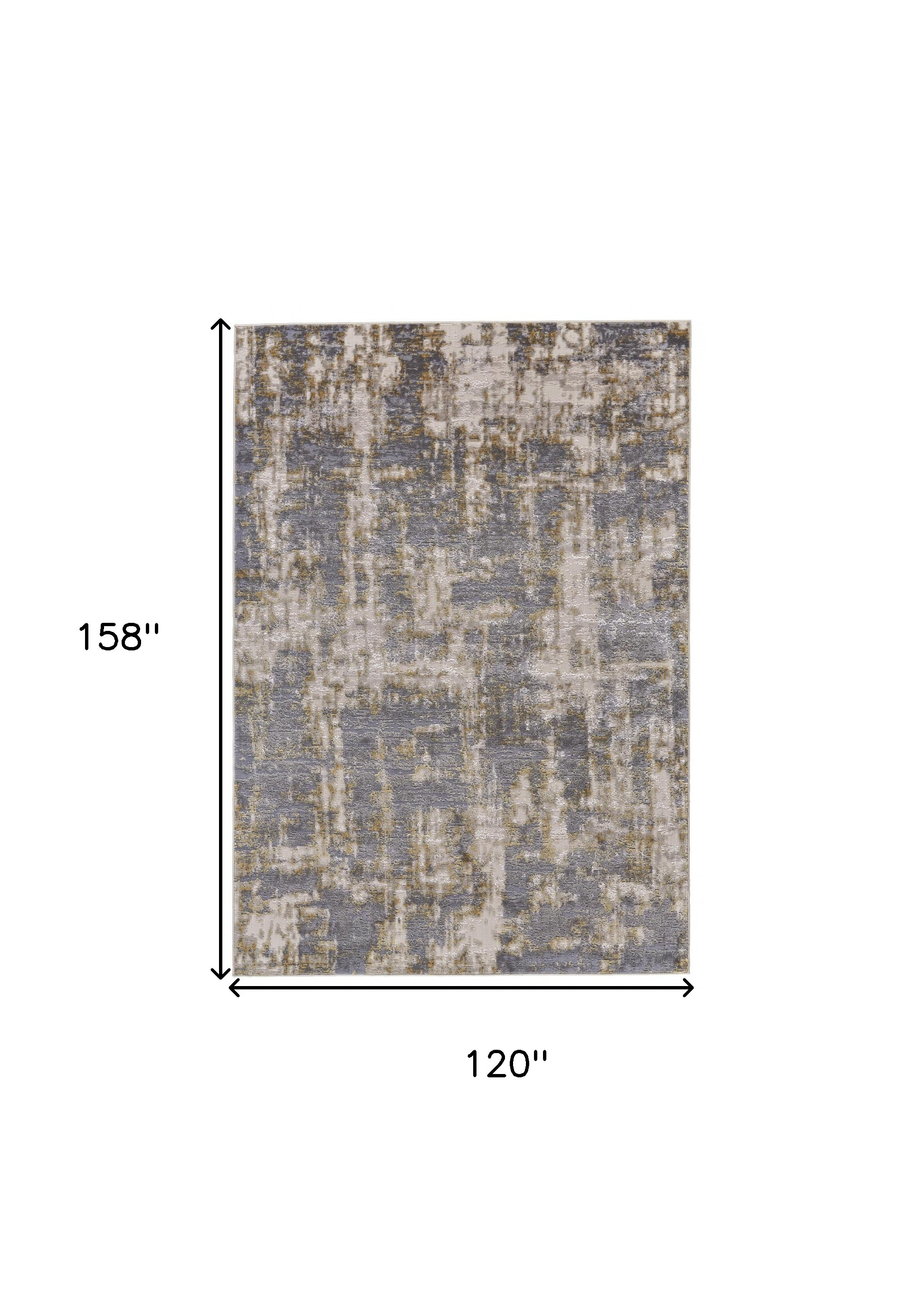 Add some artistry to your room with this 10-foot x 13-foot gray and gold abstract area rug. Ideal for spaces with kids and pets, this rug is stain resistant to help repel dirt and spilled liquids. Built to last, this rug crafted from polypropylene fibers is known for its durability and long lasting appeal. Rugs are a great way to showcase your style, hide imperfections, warm your home and reduce noise. 120.00-inch h x 158.00-inch w x 0.39-inch d.